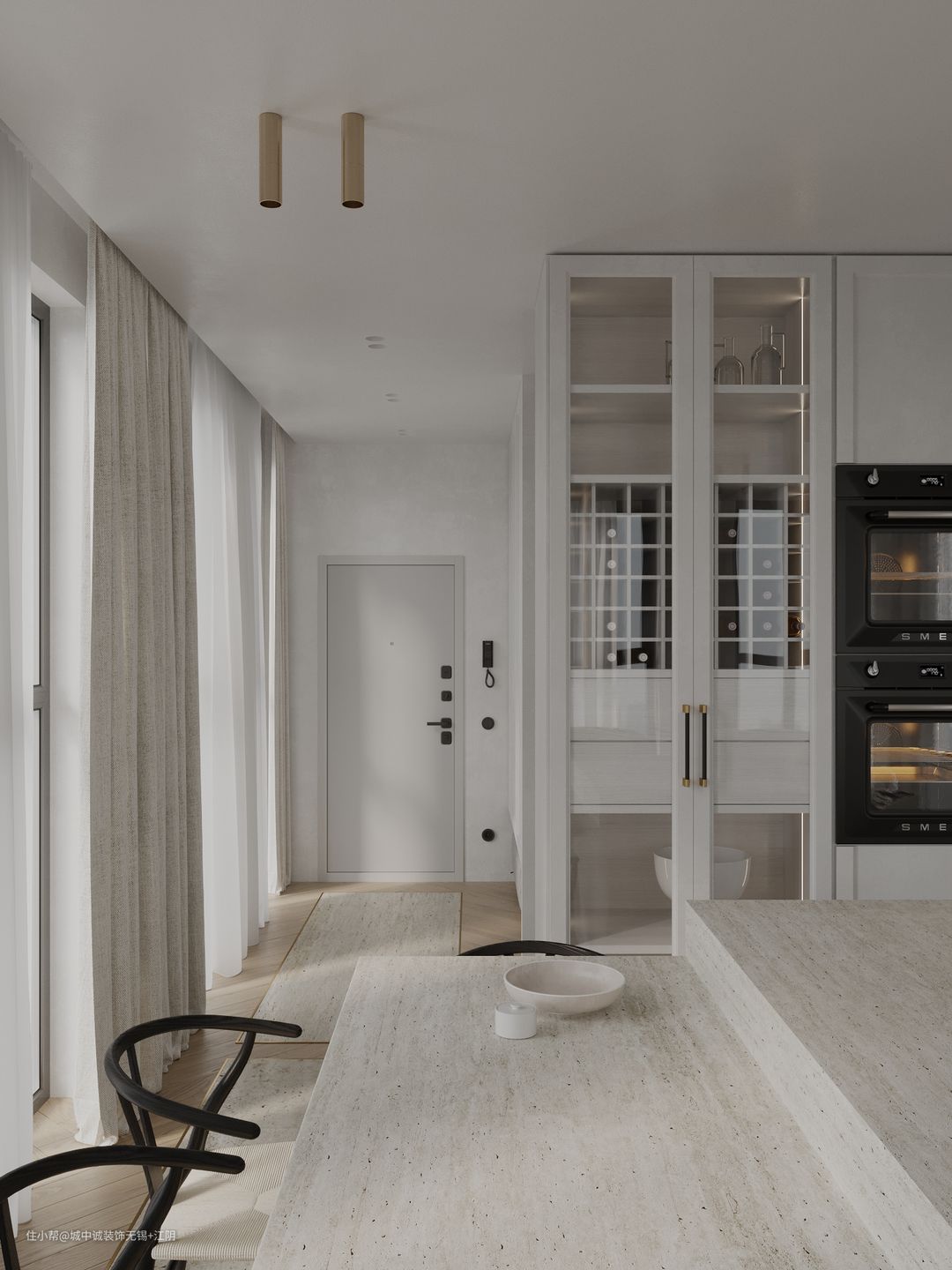 本案例是120平方,业主需要简约但不简单。整体两个房间就可以 、开放式的思维