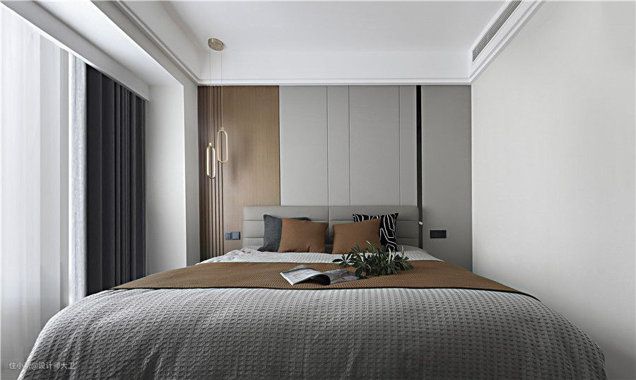 主卧以灰咖色为主色调,大气明朗的直线线条,给人舒适沉稳的感觉。
