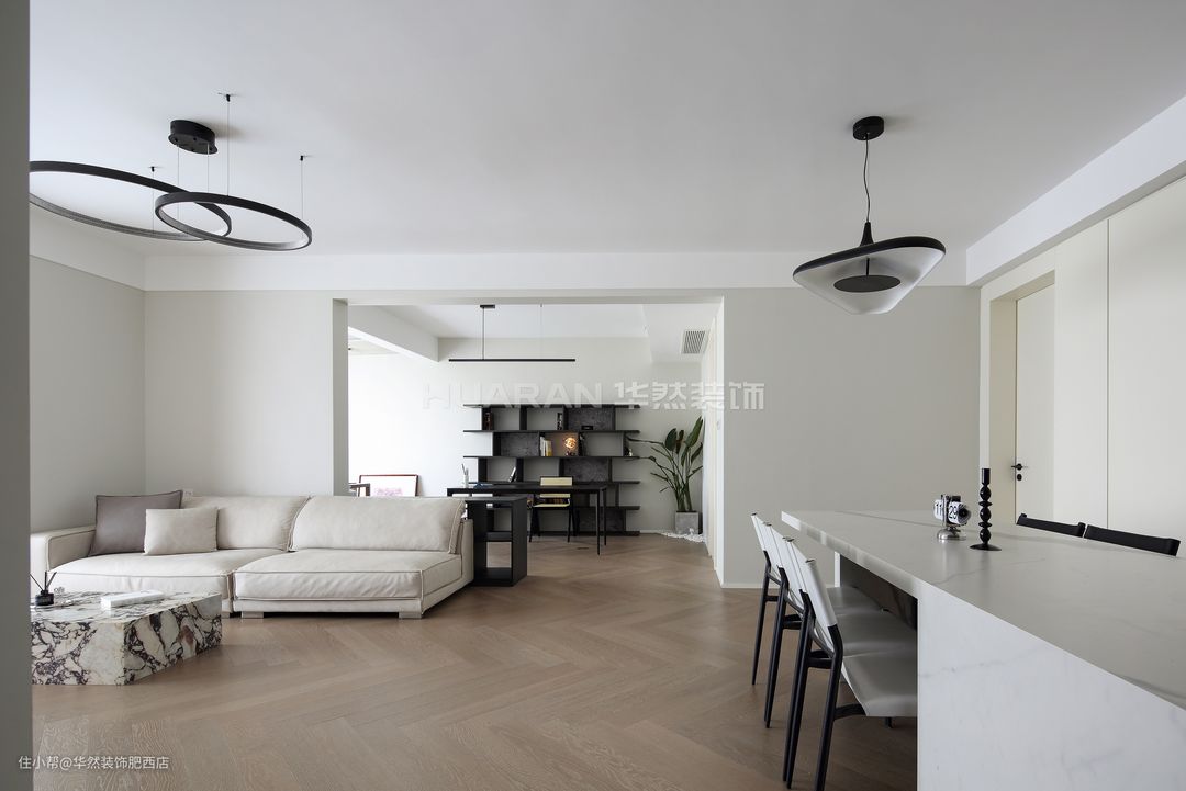 项目地址:禹州翡翠湖郡 项目户型:洋房/三室两厅一厨两卫 项目面积:建筑面积 143 ㎡ 项目风格:现代简约 装修费用: 基础装修: 12万元 软装&家具: 10万元 设备&主材: 30 万元 电器:5万元 作品名称:《太白》 【写在前面】 侘寂风作为一种新颖的空间风格似乎流行依旧,然而现实中选择侘寂风的仍属少数,房间的家具装饰品少而精,用材简洁具有质感,非常考验设计师对风格的把控能力。而最容易被大众所忽略的是背后的施工工艺,实际上越是极简风格,对施工工艺的要求越高。而华然从不局限于某种单一风格,无论是繁花似锦的巴洛克,还是空无一物的侘寂风,我们都能量身定制,圆满交付。 【结识华然】 本案的屋主是一对高知夫妇,女业主与设计师是多年好友,又了解到了华然各项施工优势和服务保障,因此将新居托付给华然也成为一件极其自然的事。年轻的夫妇俩对于新居的空间设计很有自己的想法,侘寂风是本案的定位。少之又少的物品和最简单的色彩与材质,营造出简洁而不失温暖的轻侘寂风,彰显二人独特的生活态度。