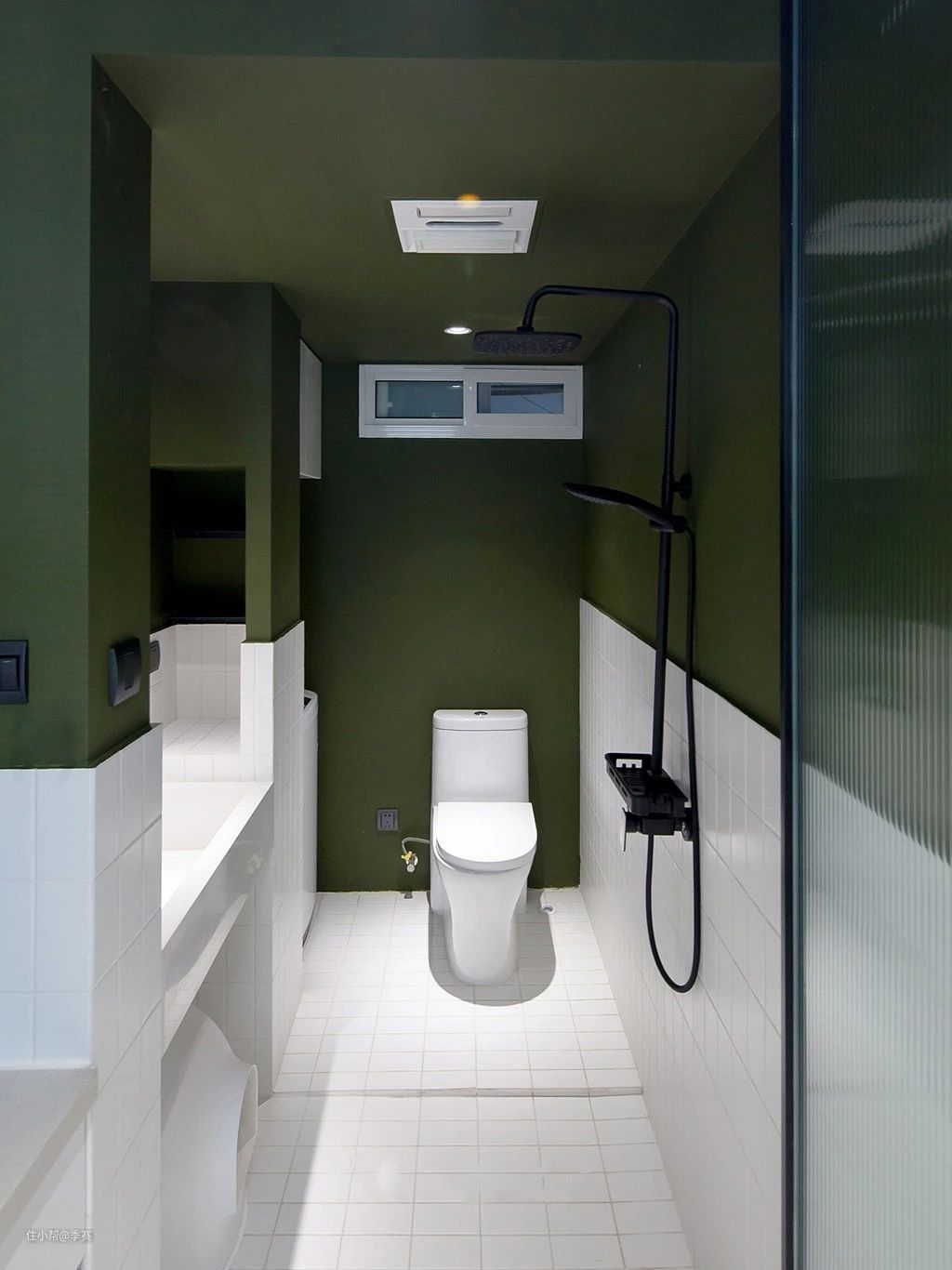 为了空间的疏通感并未在厨房和卫生间之间做隔断 在单人居住的情况下不是什么问题,但也留了足够的空间,如果有需要可以架上一道窗帘,隔开两侧