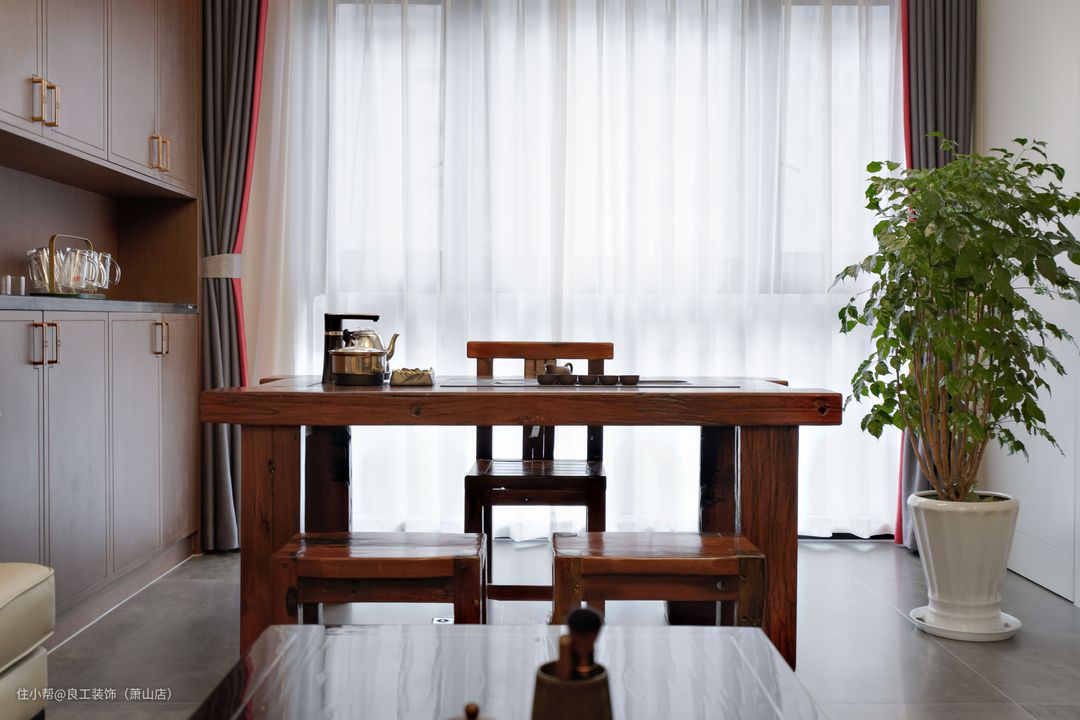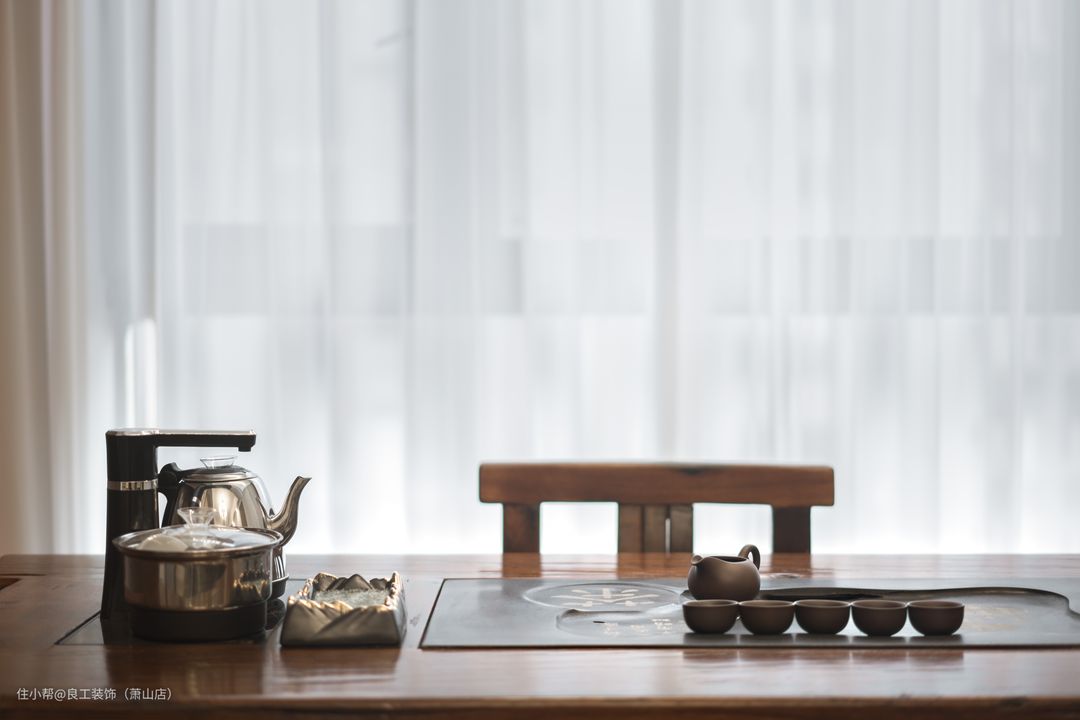 阳台打通纳入客厅,释放出更多室内使用空间,恰好打造出一隅凝练有序的开放式茶室。温和醇厚的原木家具,让空间显得格外细致考究。