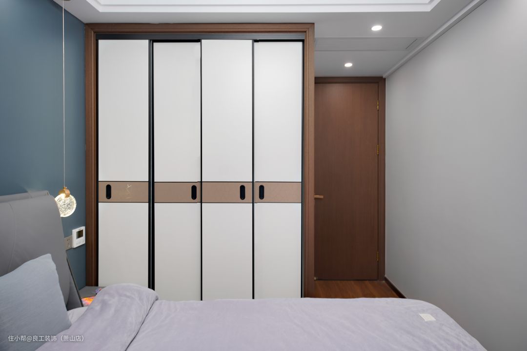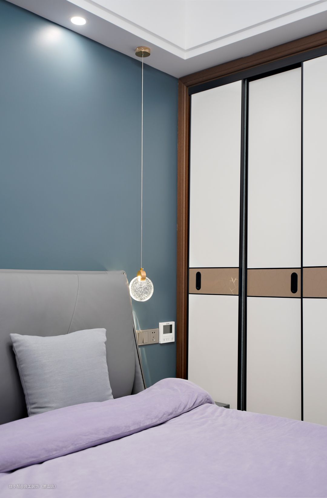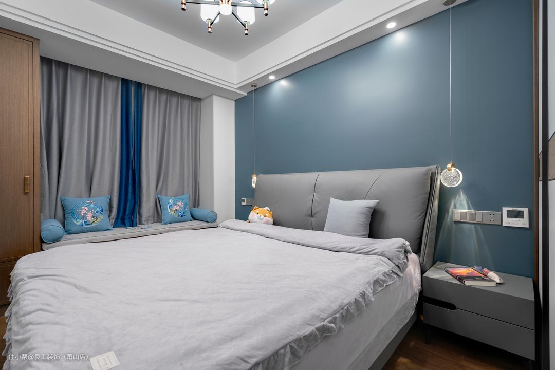 蓝灰色系的次卧空间以纯粹简洁的语言和装饰定义一个简约空间。