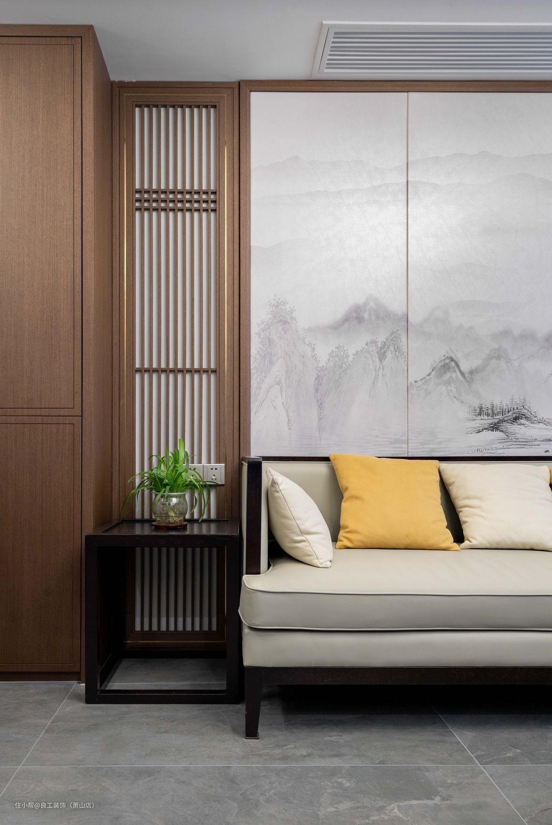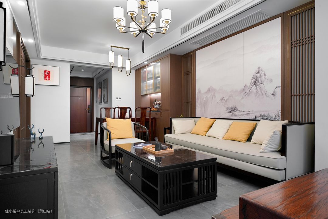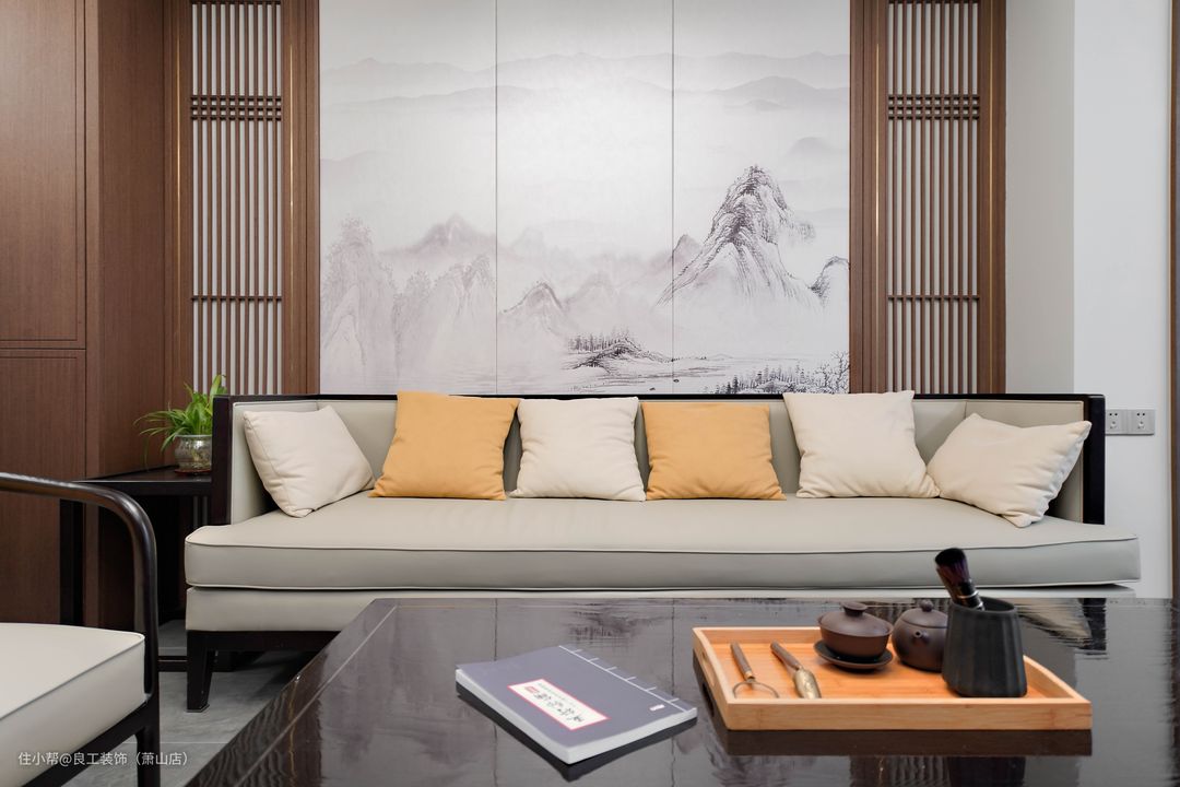 映入眼帘的沙发背景墙借山川之灵秀峻美,悠然水墨晕染而开,寥寥几笔间,让亘古绵延的东方情怀,生长于空间。