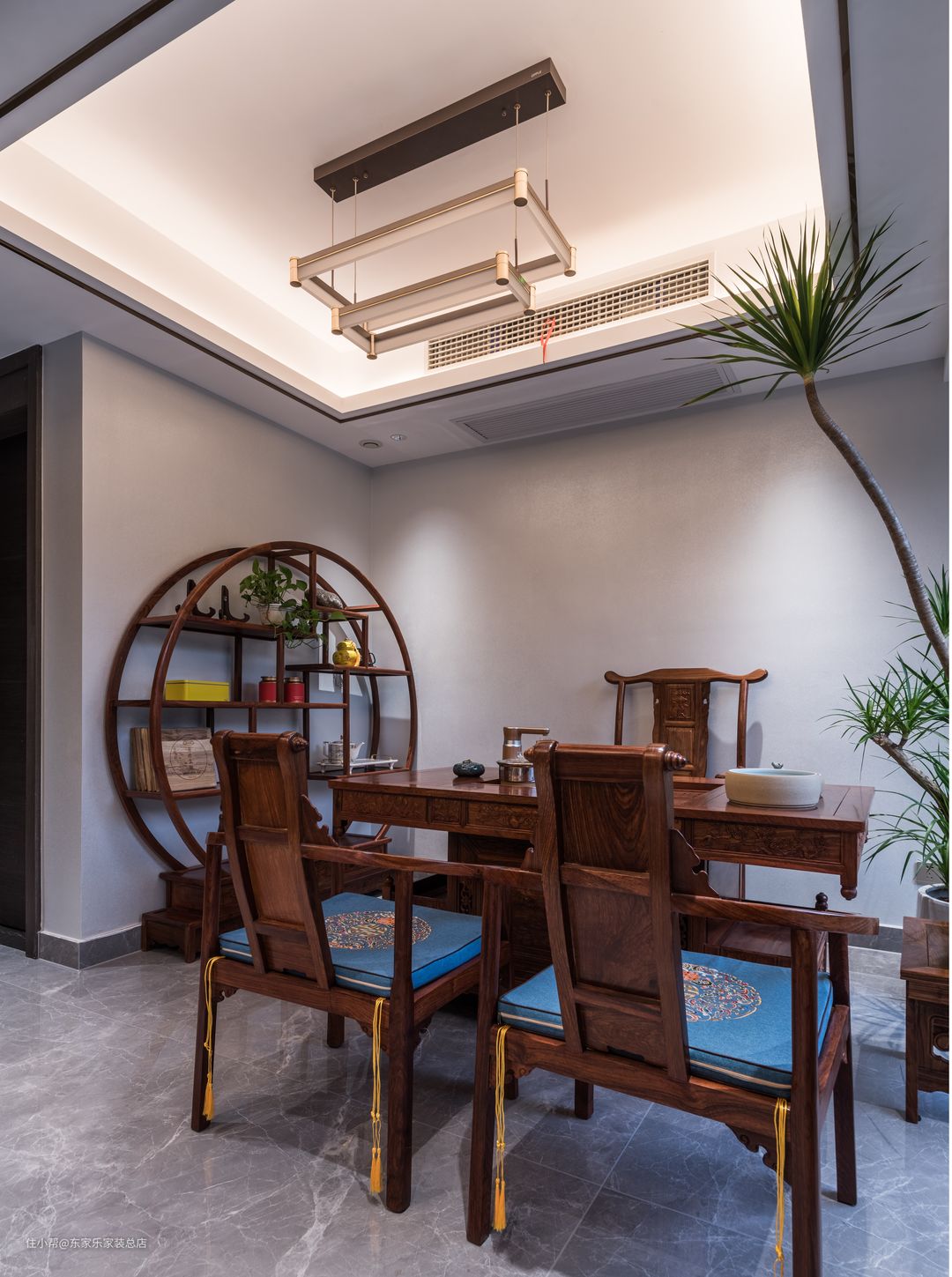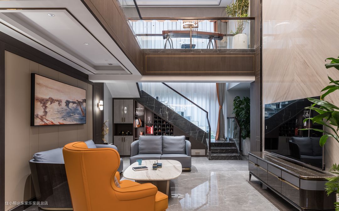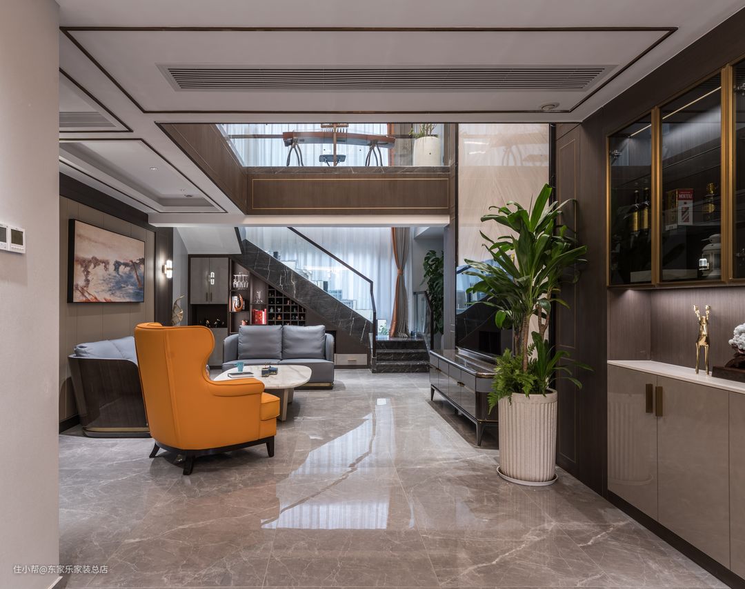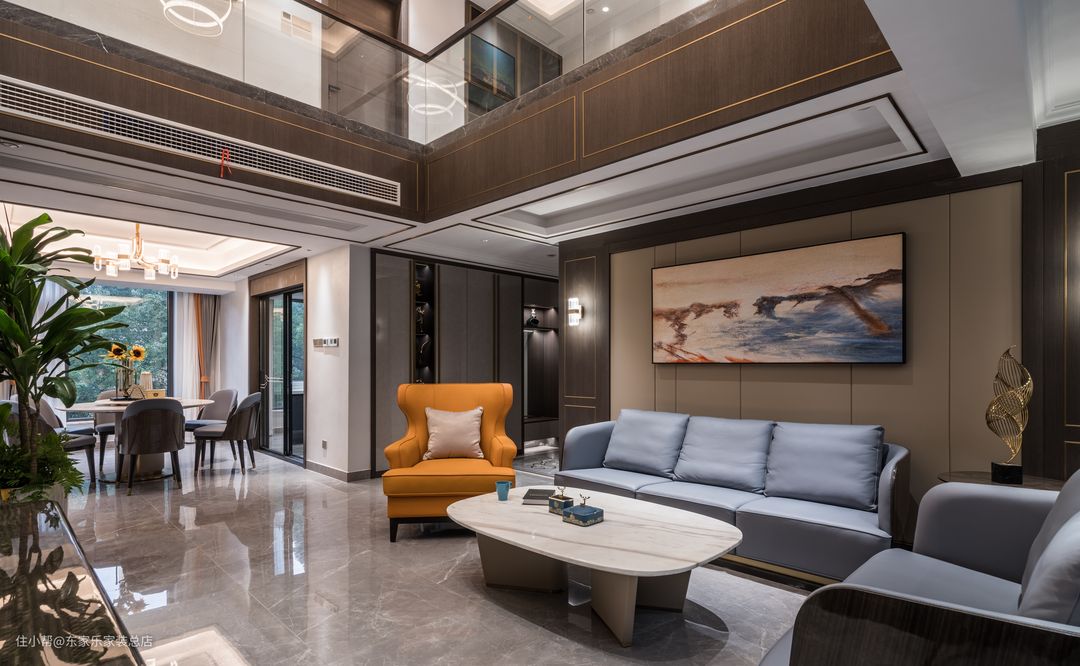 这次的屋主都是企业高管,都有比较高的文化素养。但是男业主对于新中式风格情有独钟,而女业主又更偏爱现代简约装修风格,对整体的家具要求比较严格,并且要求空间色彩搭配上能够沉稳大气一点的同时不缺乏时尚,颜色也不要太跳脱。因为有两层楼的原因,希望把老人的卧室能安排在一楼能够方便一些。