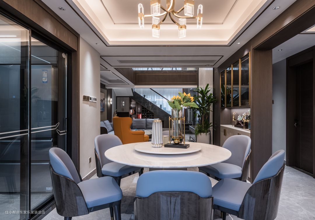 这次的屋主都是企业高管,都有比较高的文化素养。但是男业主对于新中式风格情有独钟,而女业主又更偏爱现代简约装修风格,对整体的家具要求比较严格,并且要求空间色彩搭配上能够沉稳大气一点的同时不缺乏时尚,颜色也不要太跳脱。因为有两层楼的原因,希望把老人的卧室能安排在一楼能够方便一些。