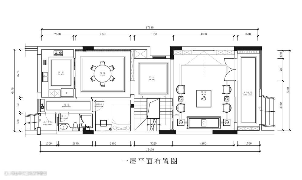 加长版的入户玄关能够给人一种进门后的大气感觉,主楼梯设计在房间的中部,更便于人们上下楼生活需求,保姆房设置在一楼,也能够保证服务人员的生活隐私性。