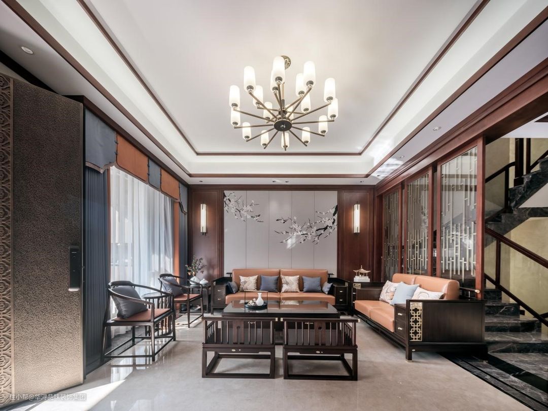 本案例业主是一位石材行业的老板,平时的工作就是和大理石打交道,平时看石材太多了,所以说在现在购买了新房之后,在装修元素的选择上更倾向于一种温馨的偏向于木材的选择。 设计师为了满足业主的这个需求,选用了现代比较流行的新中式设计风格,能够注重于化繁为简,并且是一种中华古典和现代设计手法相结合的设计理念,没有了过于浓妆艳抹似的奢华配置,进而增加一些低调奢华的设计亮点。 在室内设计上,大量采用木地板进行地面的铺设,包括墙面的踢脚线包口,楼梯扶手,等很多地方都采用了红桃木的材质,赋予了整体环境,内部较为温馨而又大气的设计效果,将富有诗书气自华般的中华意蕴和生活艺术相匹配,营造出空间环境和极致生活体验双赢的效果。