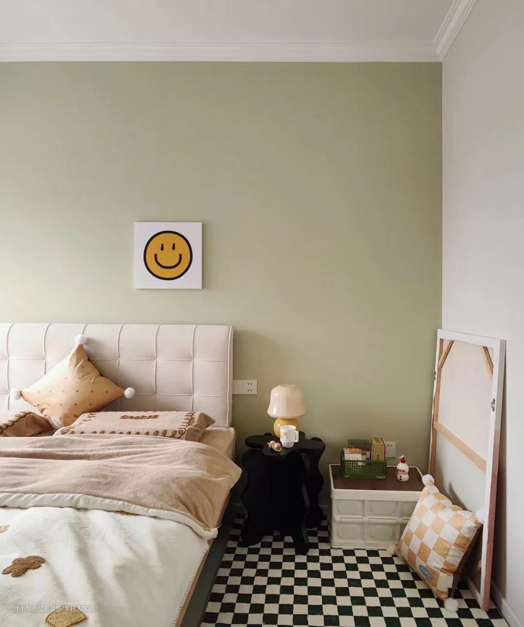 次卧,榻榻米的设计,清新绿做空间的主色彩,床品及家具的搭配与恬静素雅的空间氛围相得益彰