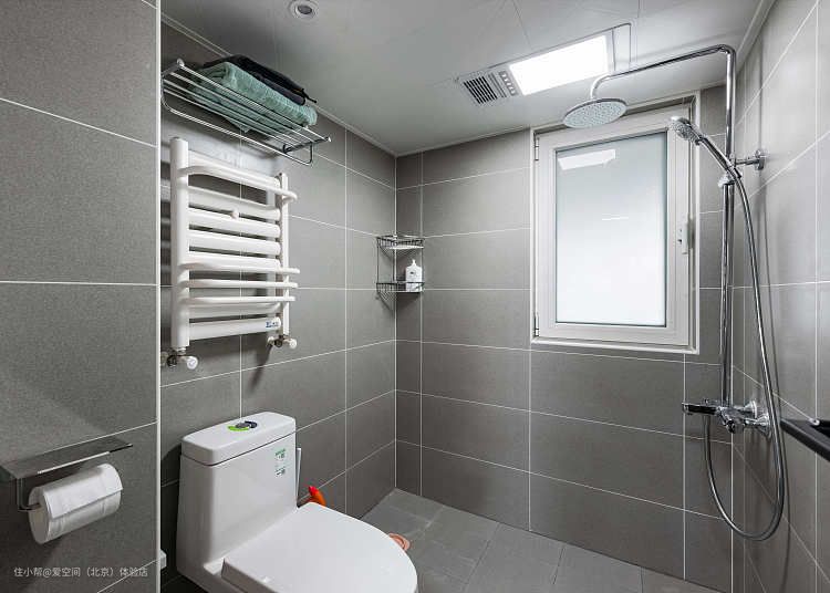 卫生间干湿分离,利于保持干爽,方便业主平时的清洁。地面和墙面均是马可波罗瓷砖,灰色不仅看起来耐脏,也散发出一种稳重的气息,符合男业主的气质。#干湿分离