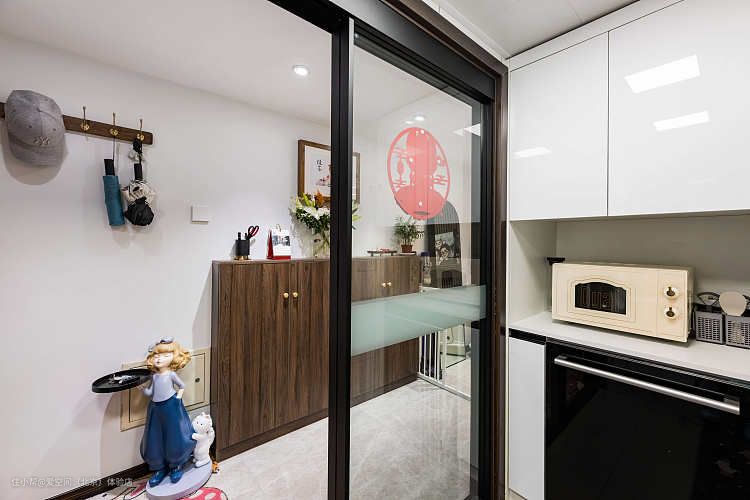 黑框的推拉门百搭,在任何一种风格当中都不显的突兀。大面积的落地推拉门也能够使厨房显得更加宽敞明亮,借客厅的光源补充采光。同时,推拉门相比于折叠门来说也更耐磨损,寿命更长。#推拉门