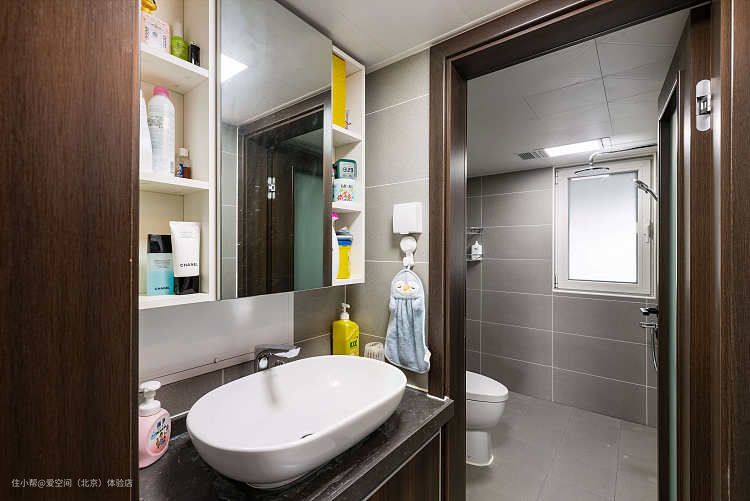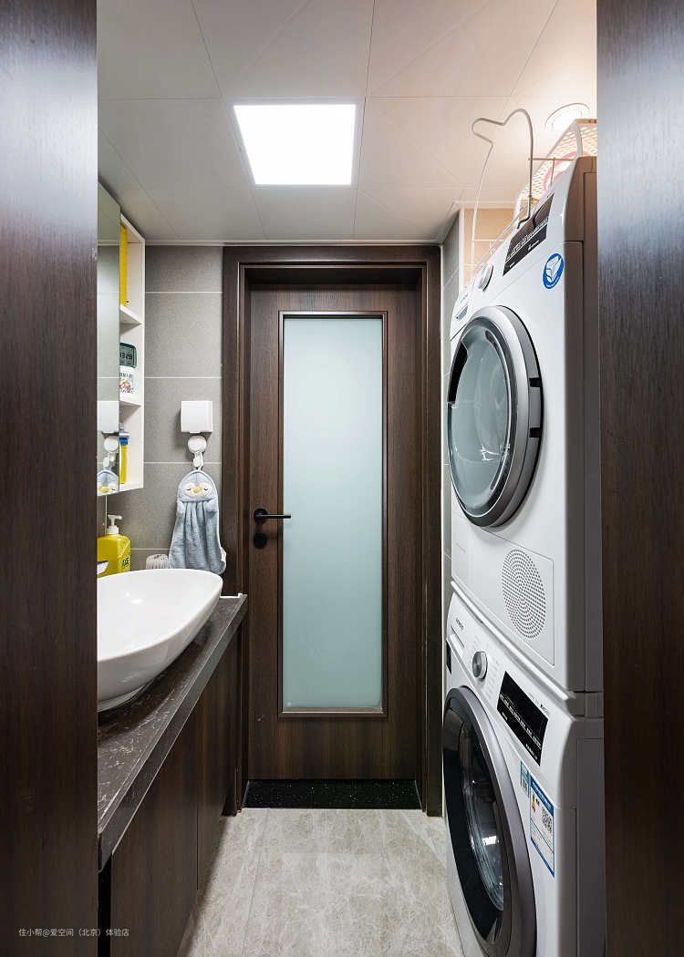 将洗手盆单独隔开来,能够保证两人完成不同的功能——洗漱、洗澡、如厕。在洗澡之前,将换下来的衣服随手扔入洗衣机。不管是早晚洗漱还是如厕之后,回到洗漱台洗手出门都是一气呵成。#卫生间