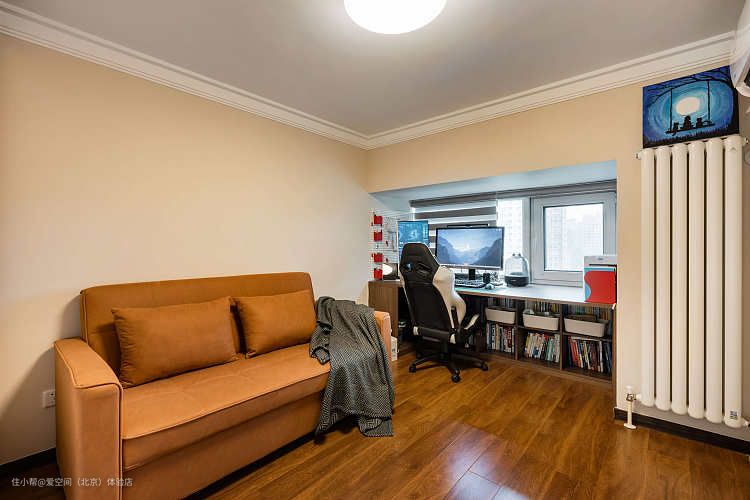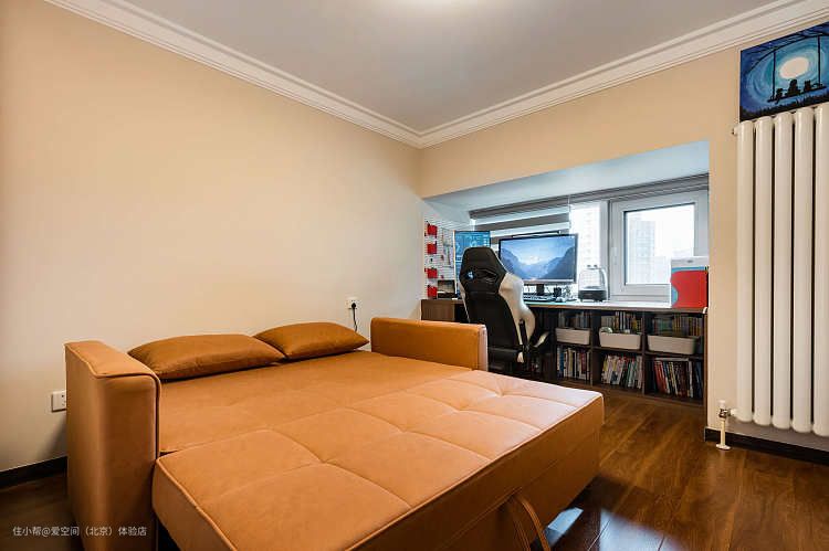 定制的沙发床让次卧的办公区域同时也能承载客房的功能。与朋友相聚留宿不再尴尬。使用也很简便,仅一人就能操作,舒适感方面也是满分~#沙发床