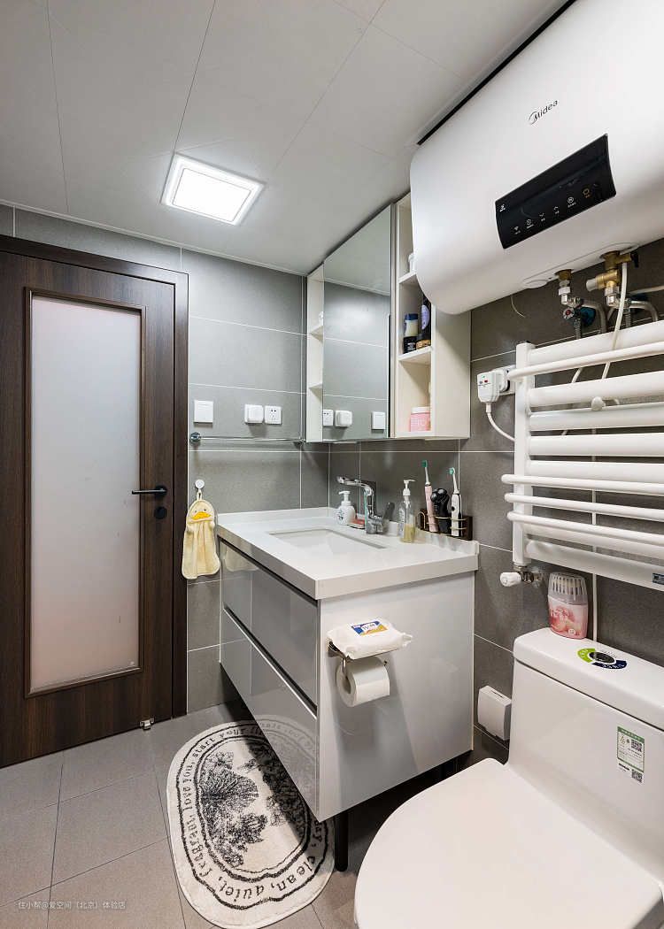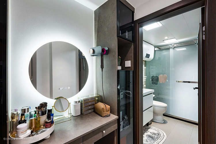 将洗手盆单独隔开来,能够保证两人完成不同的功能——洗漱、洗澡、如厕。在洗澡之前,将换下来的衣服随手扔入洗衣机。不管是早晚洗漱还是如厕之后,回到洗漱台洗手出门都是一气呵成。#卫生间