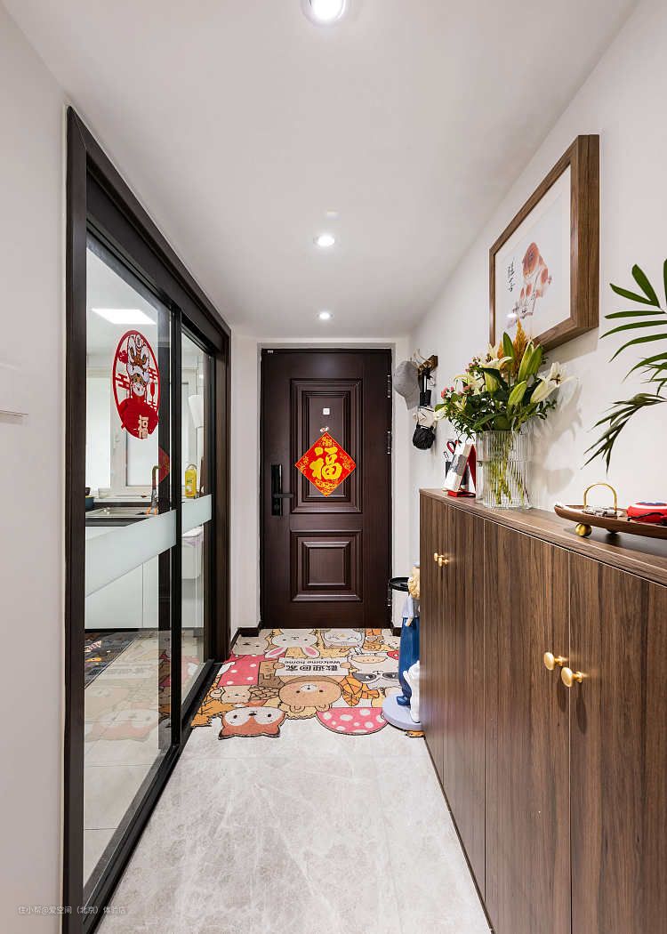 许多人对于走廊的印象是狭长且光线不足,其实装饰得当,走廊也可以成为家中一道不可忽视的风景。如果走廊没有过分逼仄,可以打造储物柜,日常用品、书本等有序收纳,开放格也可以防止香薰等装饰物,为整洁的家扩容。#走廊