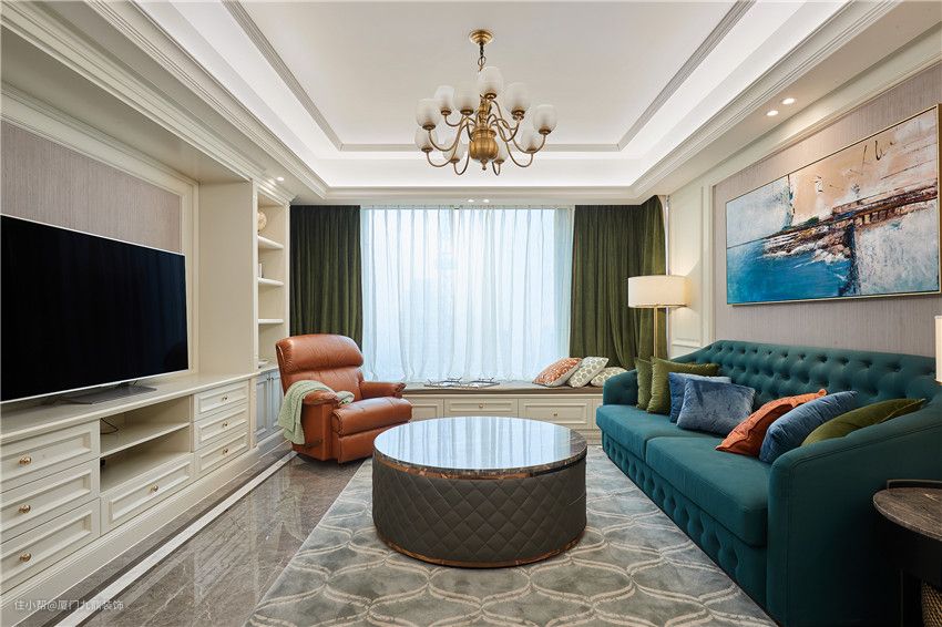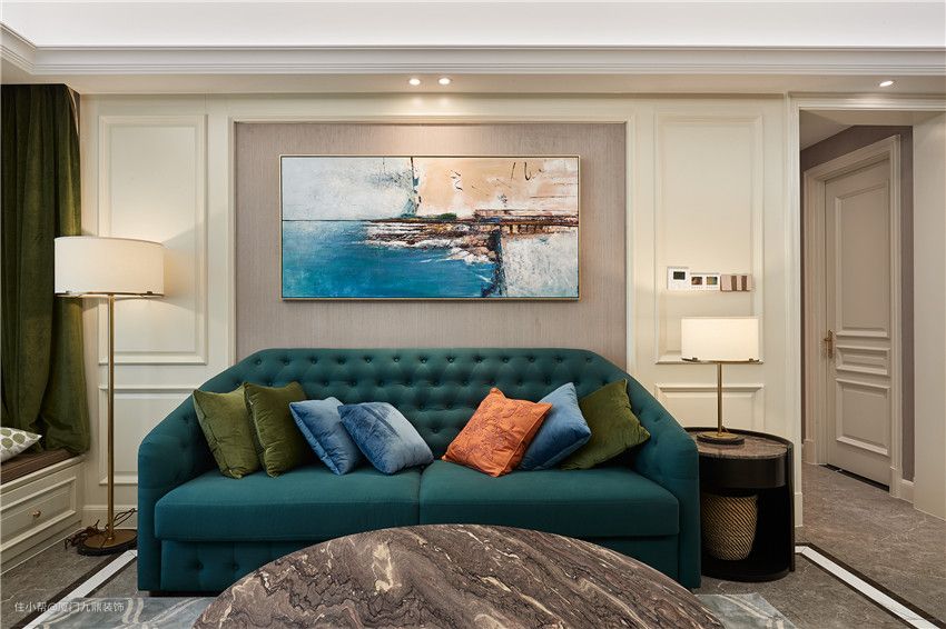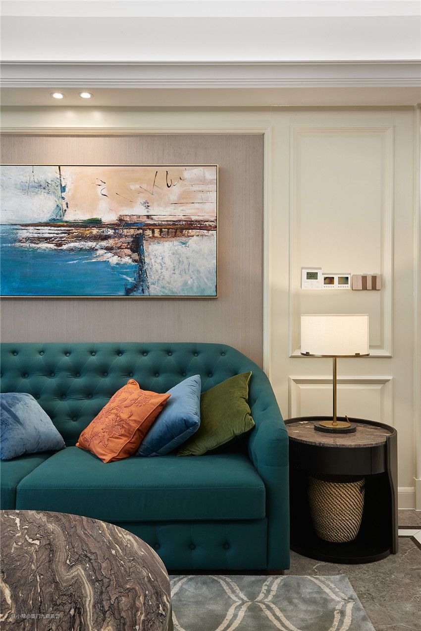 走进客厅,入眼色彩纷呈却无轻浮之感,设计师以蓝色为切入点,大胆得运将时尚颜色引入空间中,既提升了空间层次感,也更显时尚及活力。精心定制的油画让空间里所有的色彩和谐共处,华丽与优雅的绝妙平衡,妆点出空间的极致高雅范。
