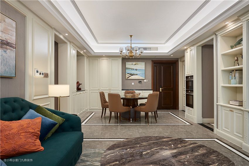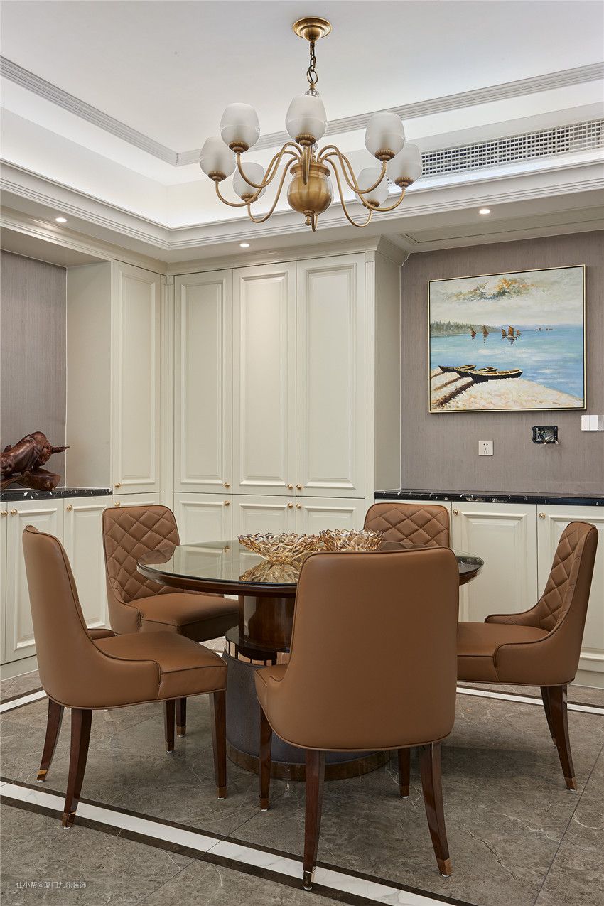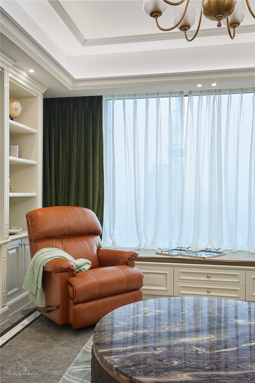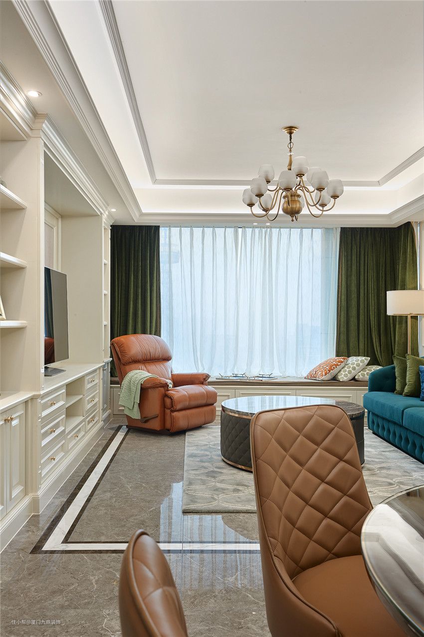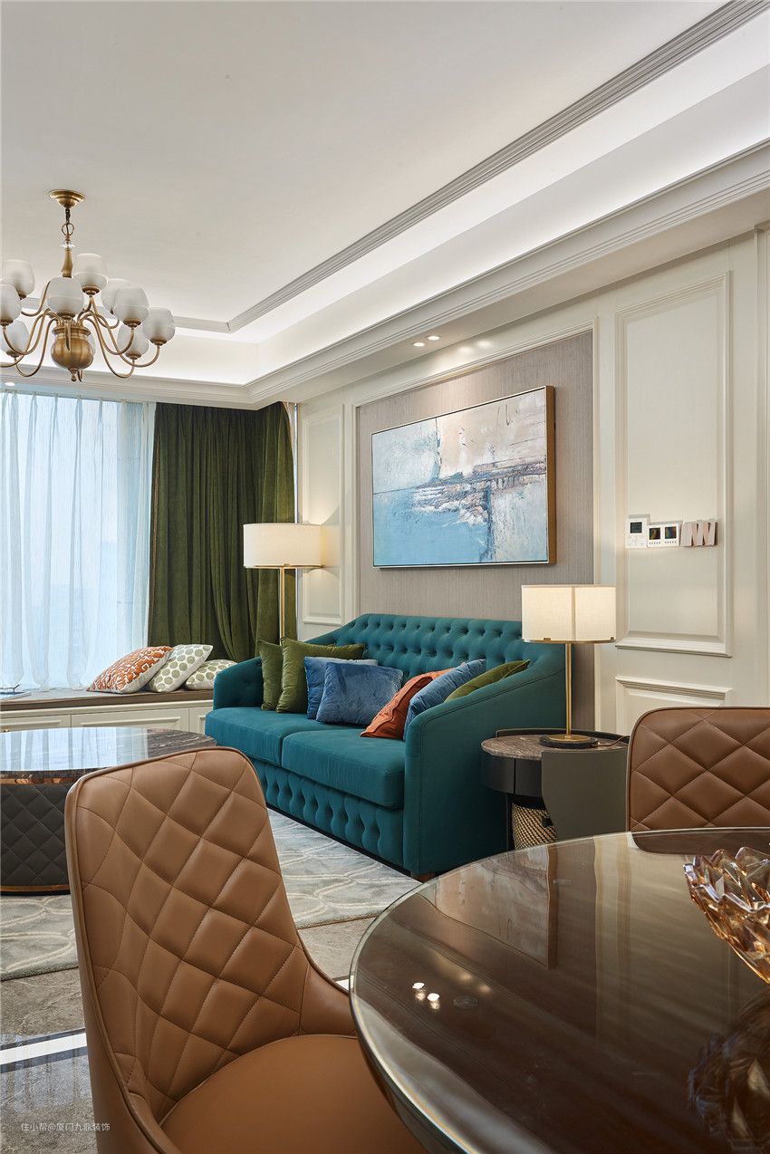业主是一位非常有品位的女主人,设计师经过几番思索,将色彩美学运用到极致,以英伦的优雅作为前调,意大利的品位为中调,现代的简约为后调,并以时尚优雅的湖蓝色、温和大气的棕色调和,让空间仿若一款优雅迷人的绝妙香氛,既符合女主人的生活品位,又兼具时尚活力。这一刻,空间里的时间也优雅了起来,仿佛这里即将进行一场好友的聚会。