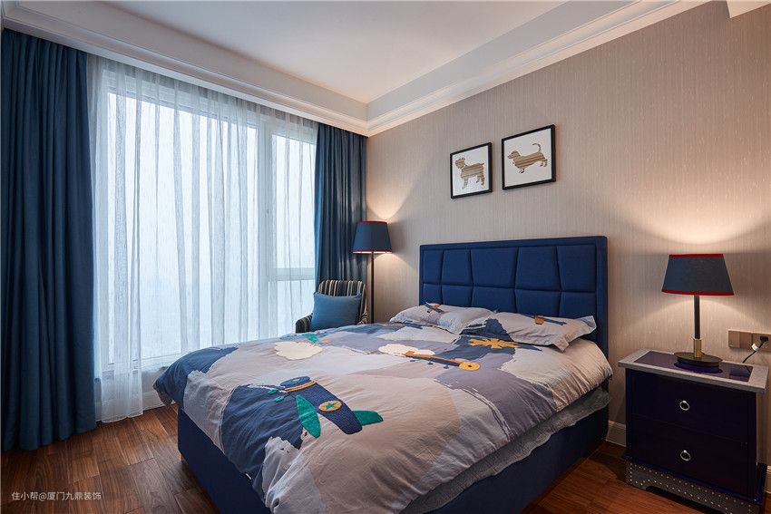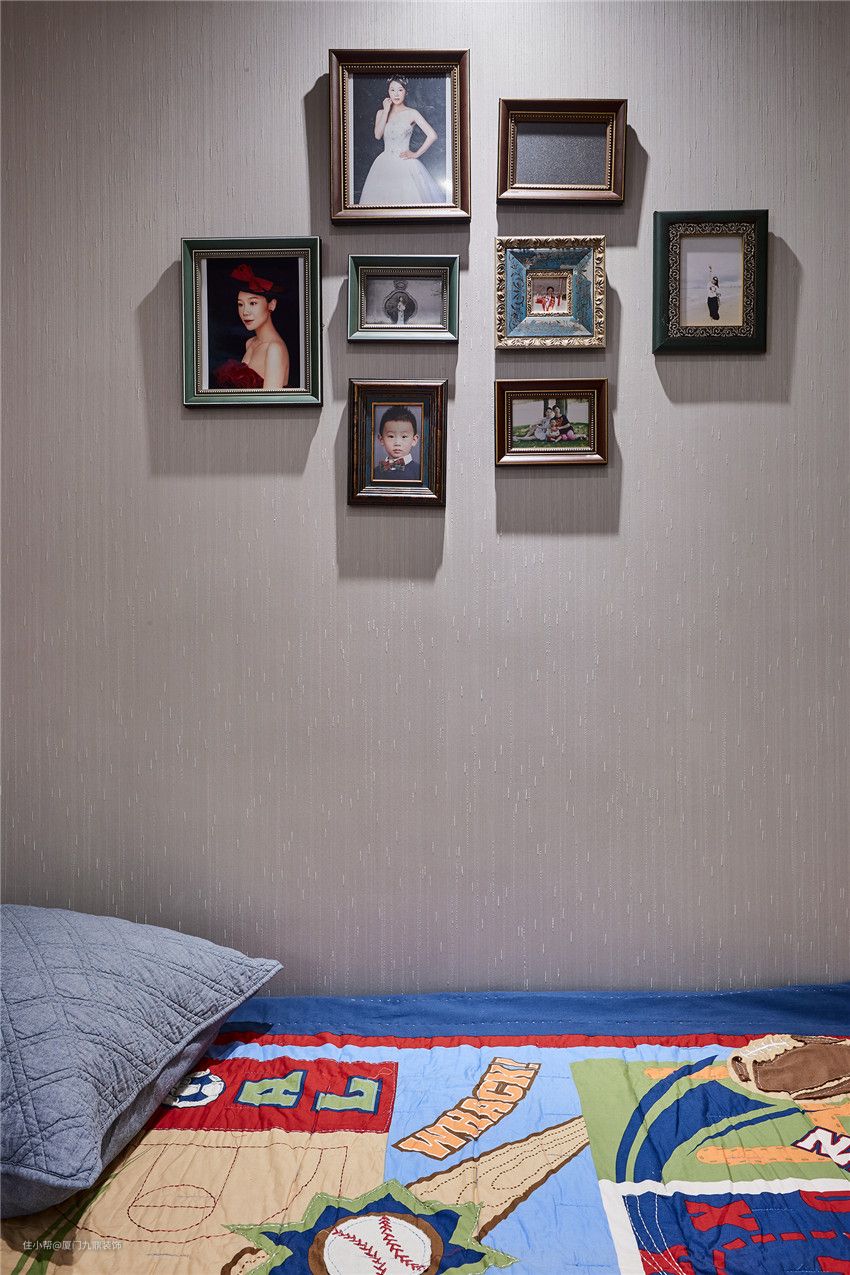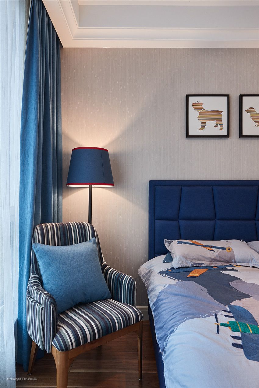 卧室摒弃一切繁复冗杂的摆设,用简洁明了的语言和时尚色彩勾勒出生活的质感。女主人有个活泼可爱的儿子,孩童房的英伦风设计,也是希望孩子能成为一位有风度的小绅士。