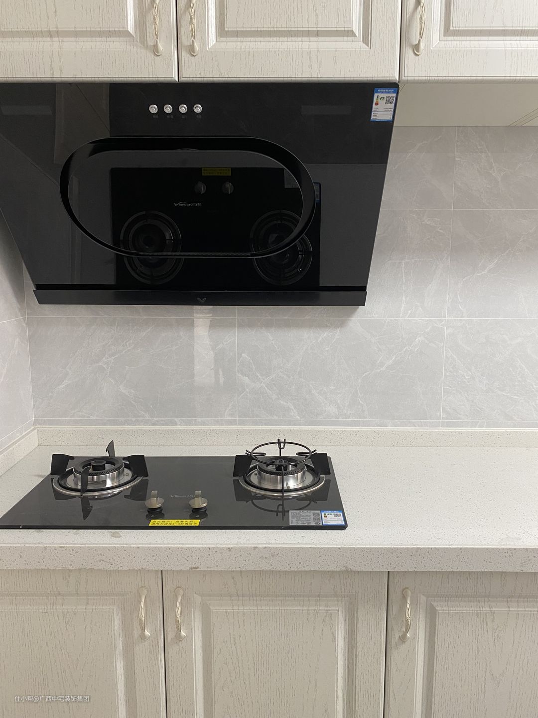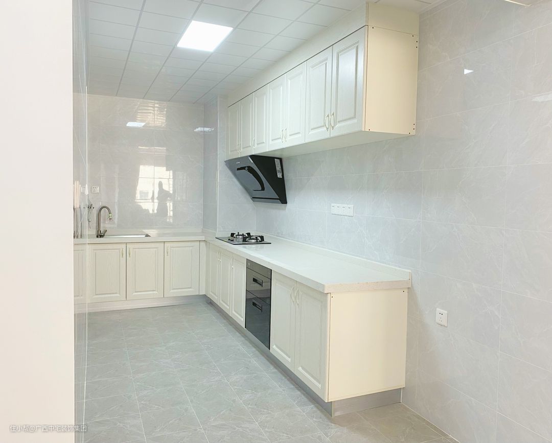厨房是开放式设计,客厅、餐厅、厨房相通,整体空间流畅度高,避开高大家具的摆放,减少了视觉上的阻拦,厨房设计因此得到大方展现。 纯白色系台面与黑色厨具相衬,呈现简约雅致的基调。