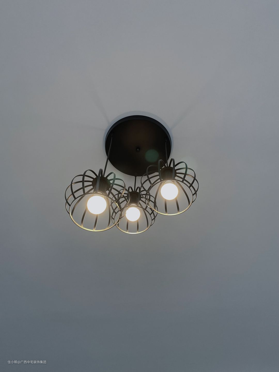 餐桌吊灯延续简约风格,镂空的设计避免了灯罩积灰。 吊灯设计将光线发散出去,光线自然接入客厅,营造温馨的居家氛围。