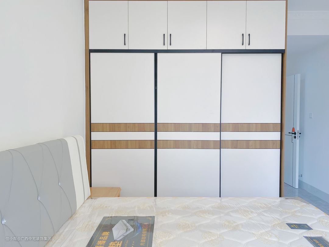 房间柜以白色为主调,嵌入棕色边线,诠释了现代风的简约设计理念,赋予空间淡淡的清贵气息,给卧室带来独特的简约韵律。