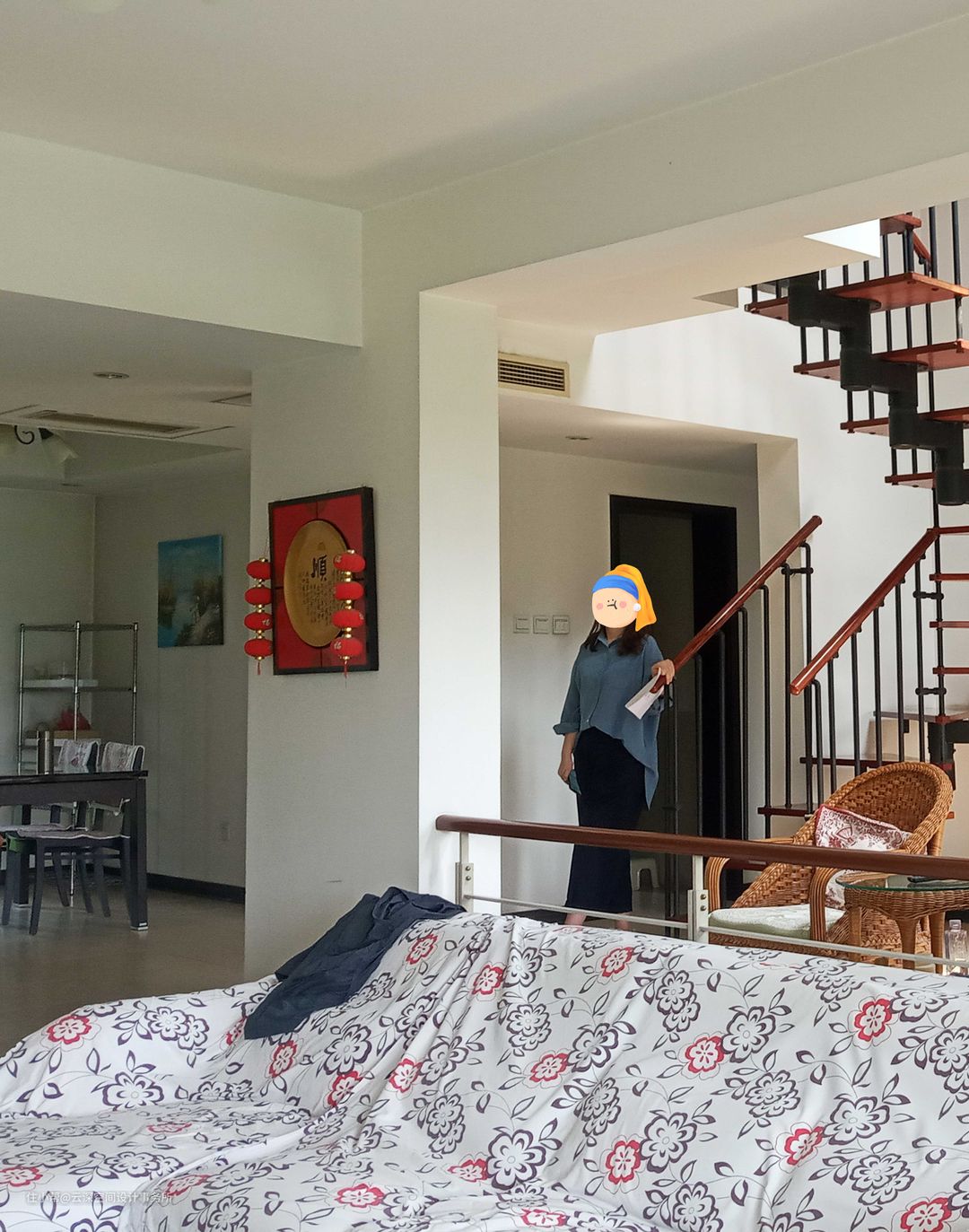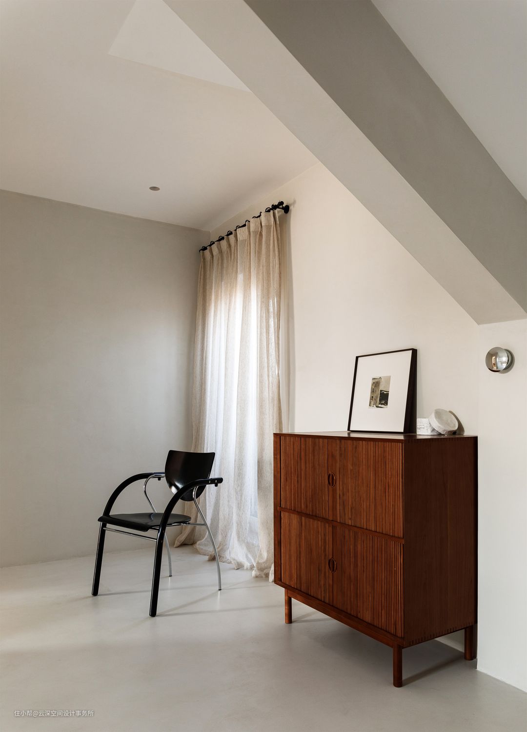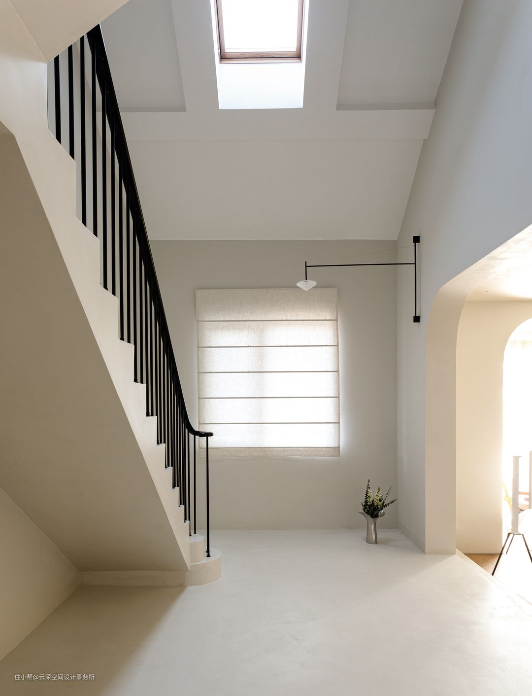 #侘寂风 #微水泥 #天窗 #楼梯 #装饰画 #干枝