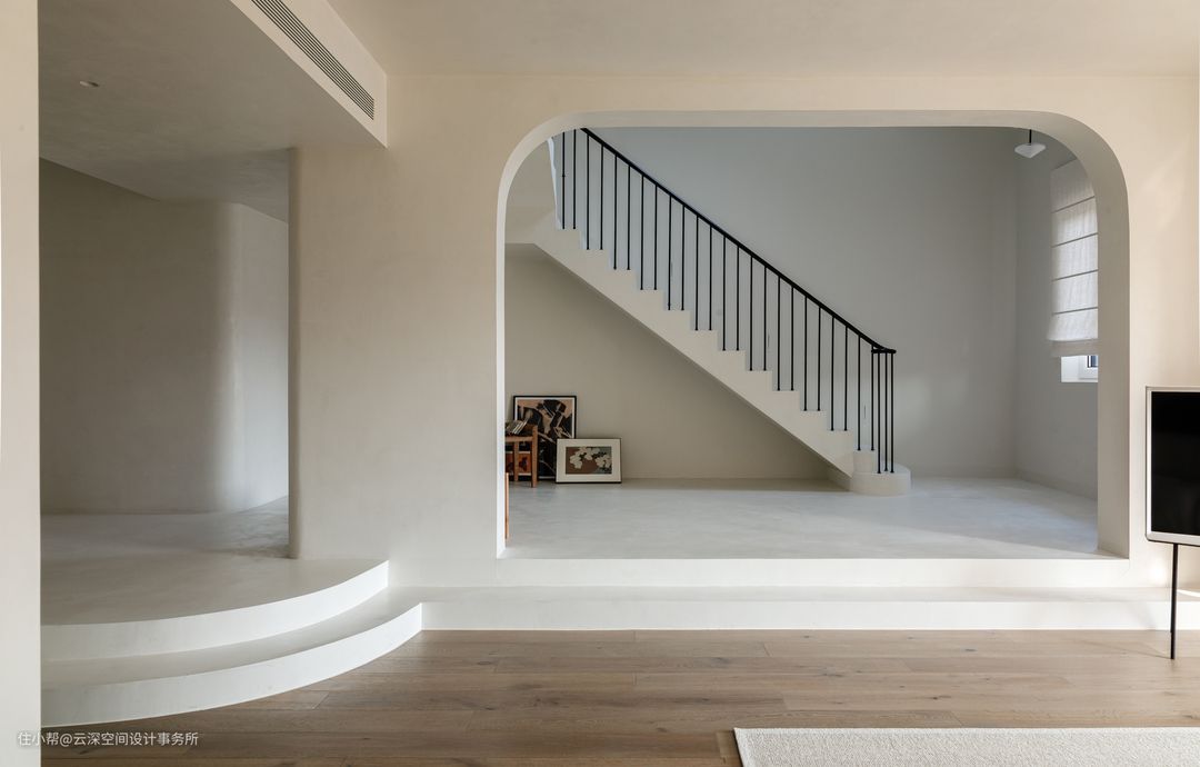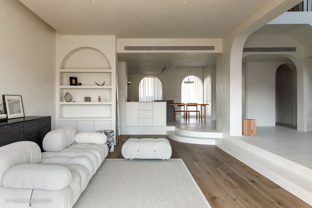 80%弧形元素丨让200㎡侘寂风的家更加温柔有层次