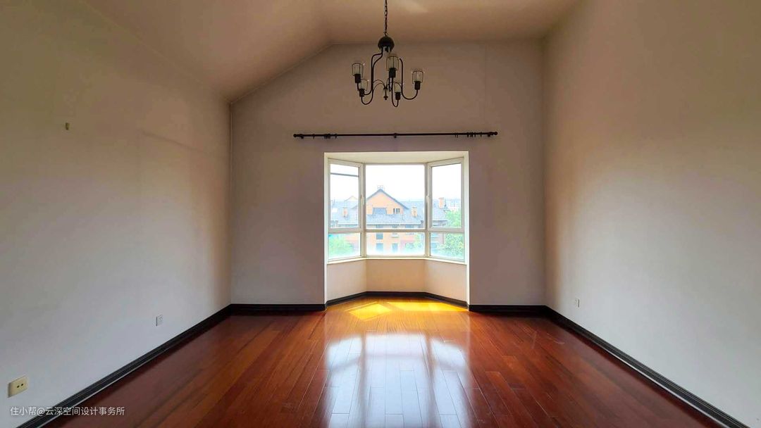 改造前,主卧层高3.86米,过高;地板颜色过深;