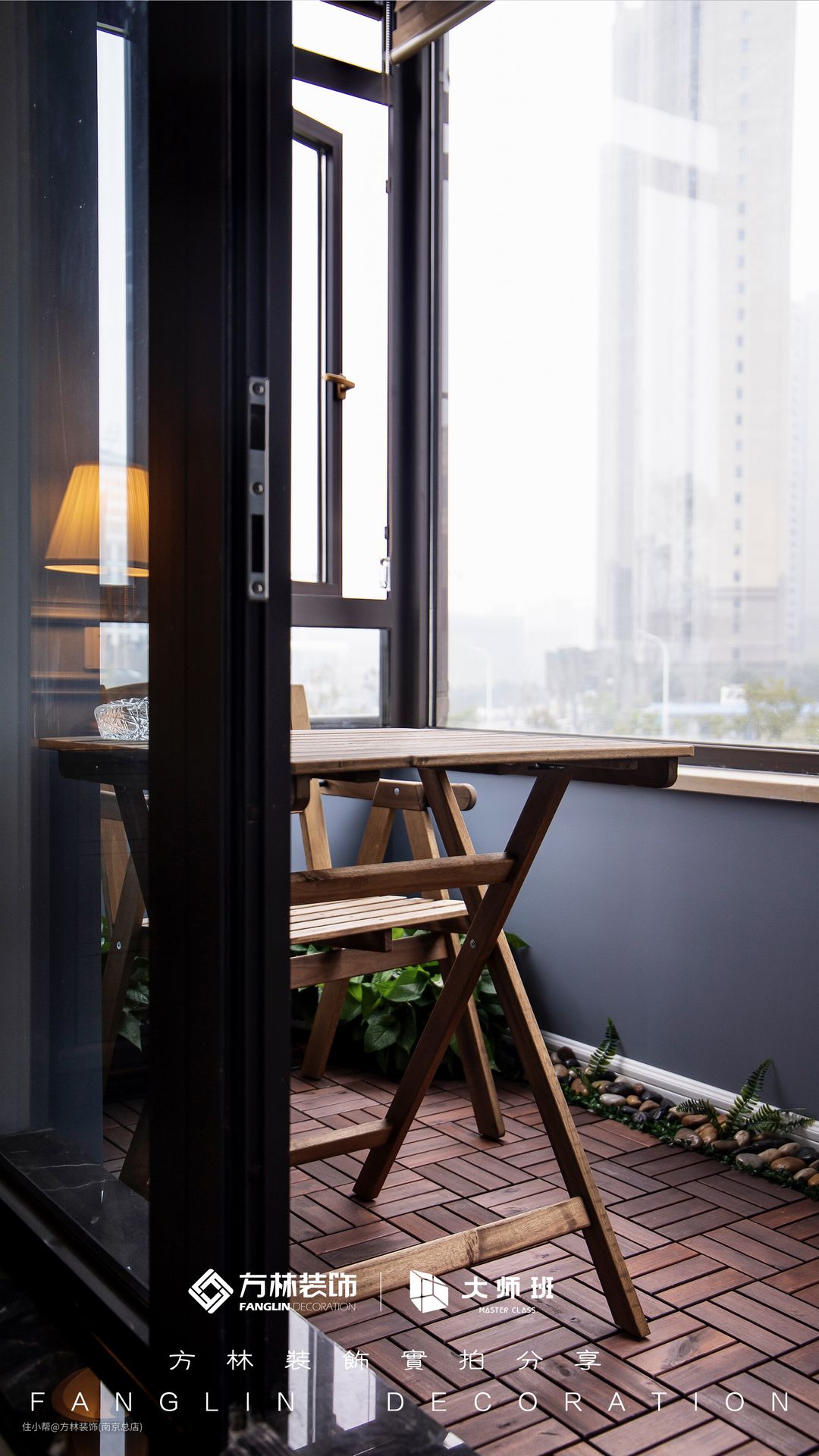 阳台做了保留的设计,因为女主也很喜欢养花,所以在阳台的区域摆放了许多的花花草草,设计师还贴心的为户主采用了地砖的设计,靠阳台侧还放了排鹅卵石。桌子采用了实木的材质,更符合阳台这一环境的美感。