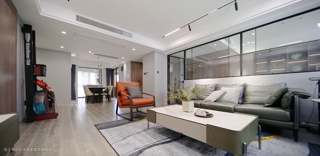 方案解析设计师在本案中运用流畅的线条比例与色块组合,展现出业主卓尔不凡的艺术品位。暖灰色皮质沙发、拼色抽象派地毯、深棕色定制家具、玻璃幕墙隔断等不同材质碰撞,让空间充满真切的生活感,工业风的主基调更蕴藏着令人神往的意趣。客厅餐厅厨房主卧次卧卫生间