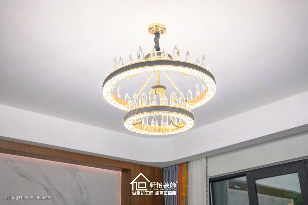 💕对于装修风格: 前期沟通的时候,业主有自己明确的喜欢意向,设计师也陪同业主去看了一些家具做参考,最终业主还是比较喜欢中式、禅意一点的装修风格,但又不希望过于老气。 设计师就找平衡点,用中式元素搭配偏咖色的木色去处理,融合出一种比较新颖的中式感觉。 💕对于生活功能: 方正的公区空间,设计师通过合理规划丰富家庭生活储物空间,释放厨房空间的规整,强化空间功能,满足业主对烹饪的高需求; 将客厅两边的花园阳台功能强化,延展成为业主的户外休闲区与孩子娱乐区,让生活多一种可能。挑选合理的位置架起楼梯,使地下室与住房联通,同时不影响原有的使用面积。 💕对于设计落地: 业主依托轩怡装饰作保障,对(莫工)设计师很信任,提供基本的需求然后给与(莫工)设计师发挥空间。最终在业主与设计师的努力下,为业主呈现出符合审美和满足生活实用需求的新家