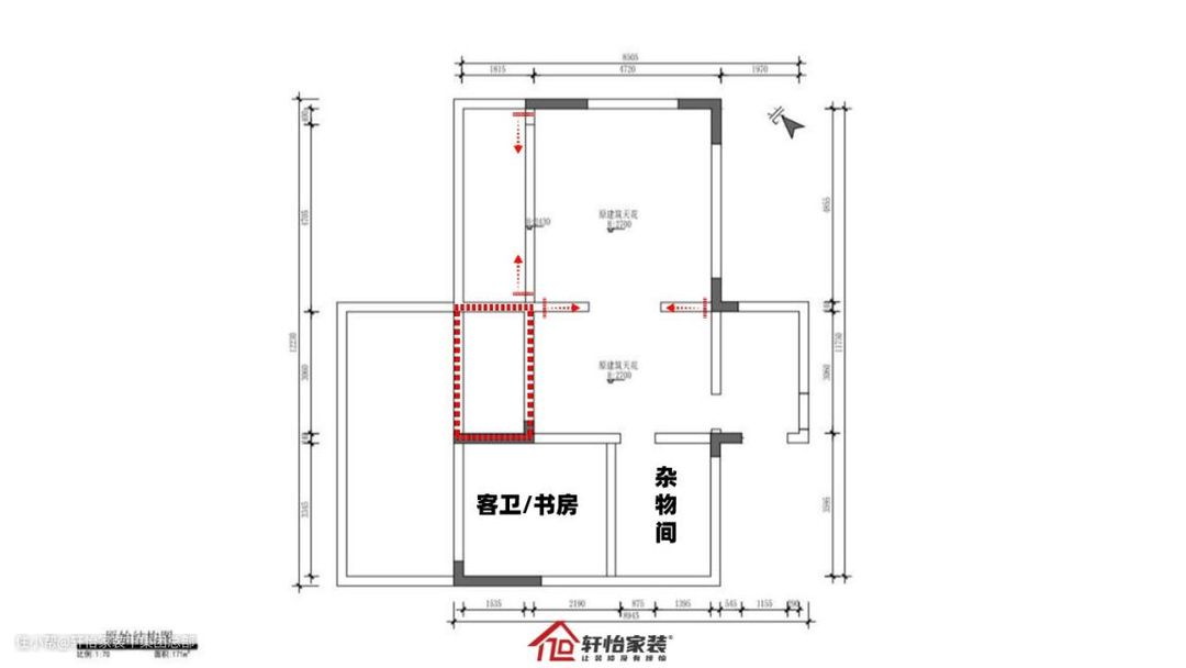 (衣帽间改造空间对比) 取消空心房,过道入门位置调整后,主卧延展出过道式衣帽间,给女主人一份尊贵优雅。