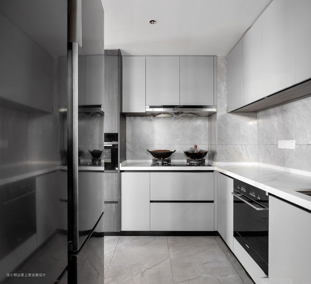 厨房是重油污的地方,我们使用了大面积的白色,干净整洁,不繁杂不刻意。 能嵌入的都嵌入,给操作者最大施展厨艺的空间,尽量让空间的动线自由,让来搭手的帮手也有容身之处,厨房自然便不是“煮夫”或者“煮妇”一人的战场。 能与爱人共同烹饪,享受美食,也是难能可贵的人生体验。