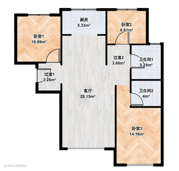 厨卫色调一致,分区明确,也是希望能给业主们一丝干净清爽的私密空间。