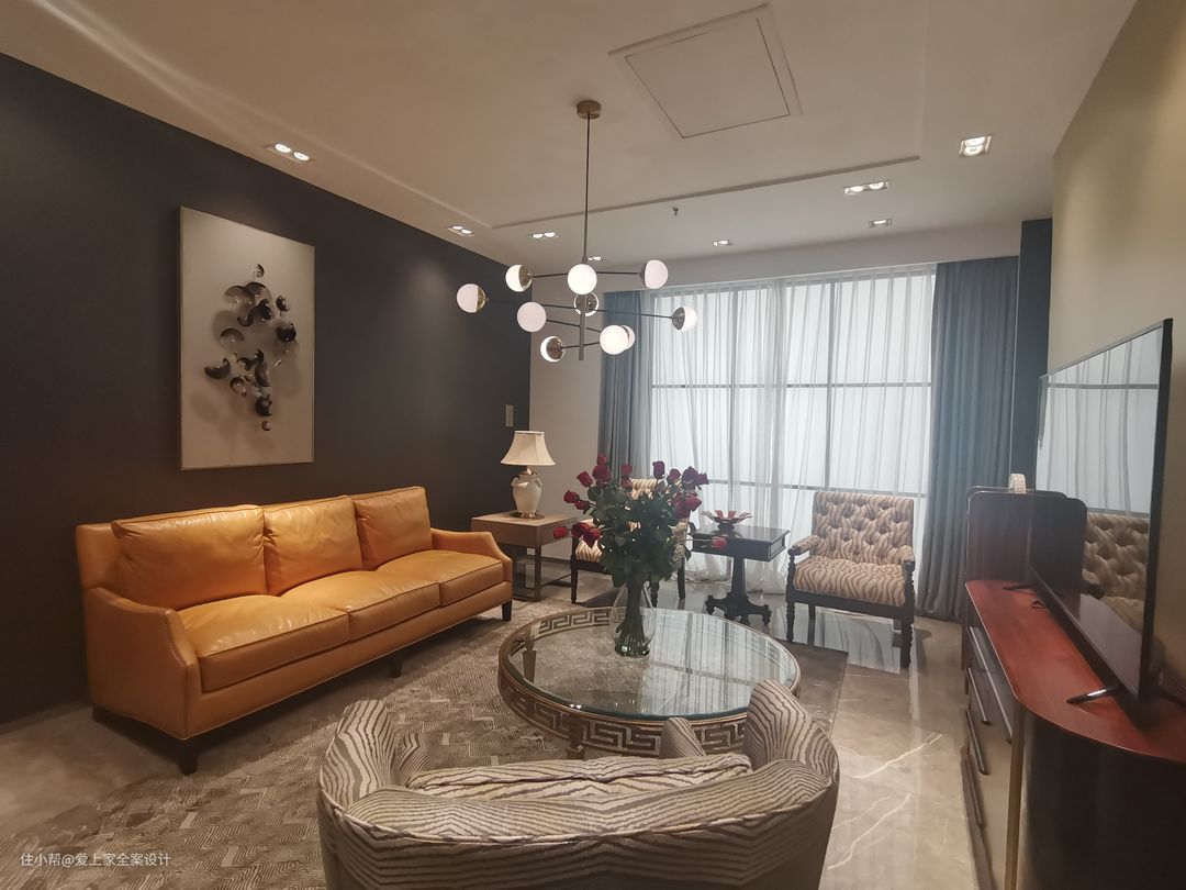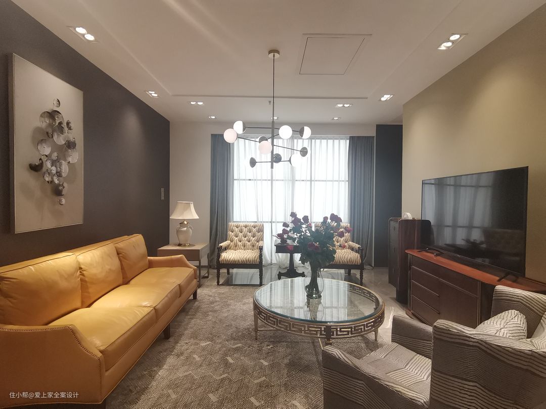 客厅吊顶内隐藏的射灯除了洗墙的功能外,也是全屋灯光层次的重要组成部分。虽然目前市面上流行无主灯的设计,但在装饰意义上来说,客厅的吊灯确实是美元素的一部分。