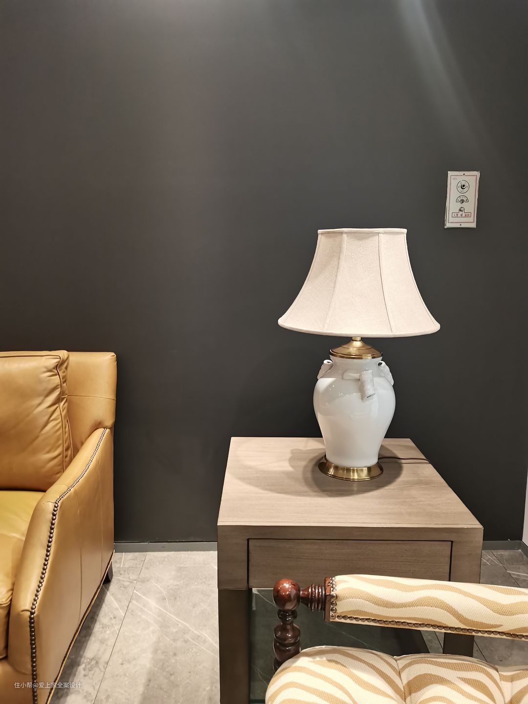 漂亮的单品台灯与墙面挂画颜色呼应,依旧是平衡美的展现。