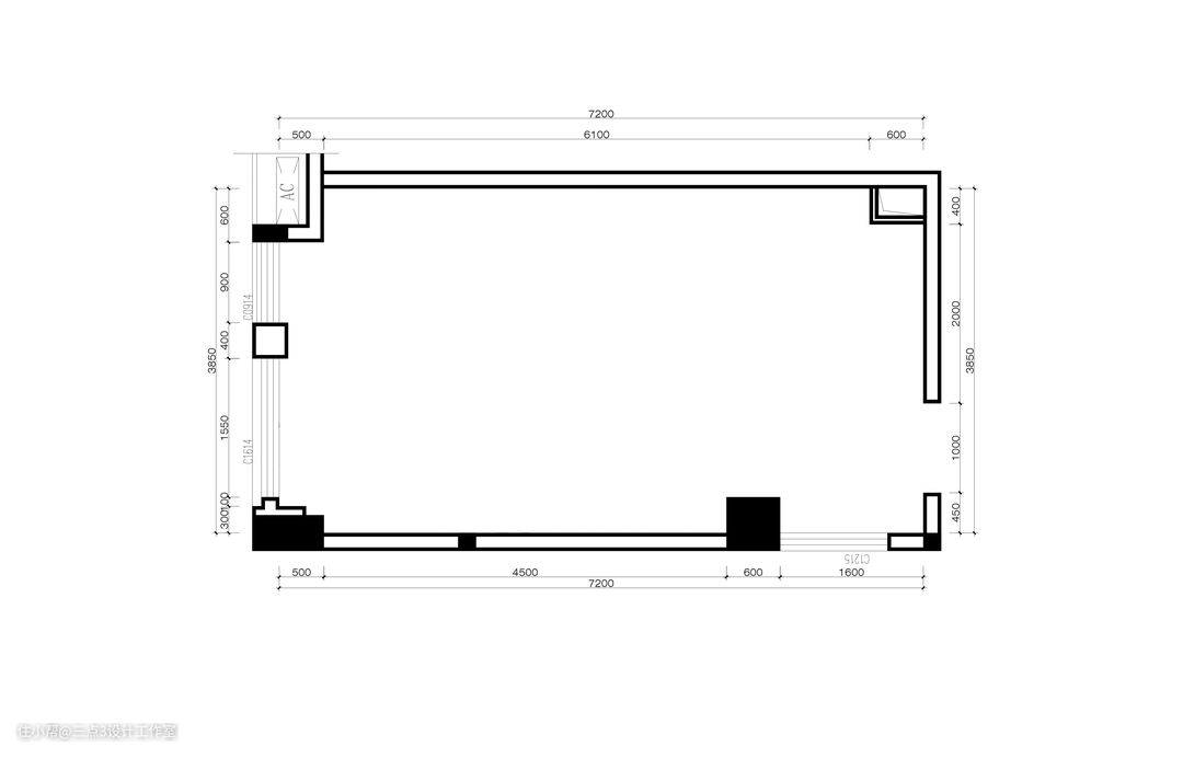 原始平面图 原始结构户型有一根房梁有点矮,后期处理需比较小心