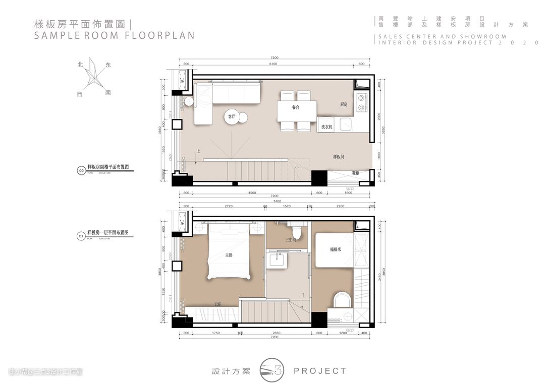 改造后的平面布置图 平面布置主要以一对年轻夫妇外加一个小孩的形式来进行设定的; 利用层高,重新规划分出上下两层的空间,变成两房一厅一卫一厨的使用空间;