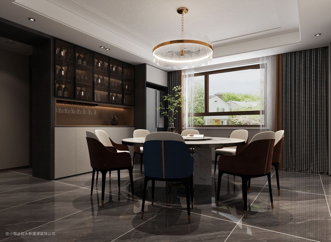 设计在处理冲突美学的逻辑上,通过风格特有的对比进行表述,开放的餐厅既有简约留白的东方意境,又有奢华的装陈设计,线条曲直并行,材质刚柔搭配,精致却不浮夸,包容一切个性,满足生活仪式。