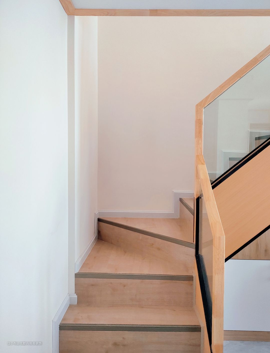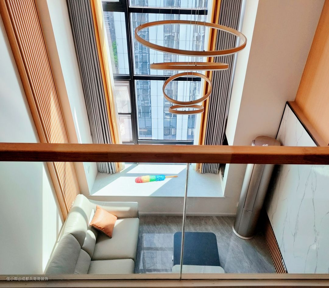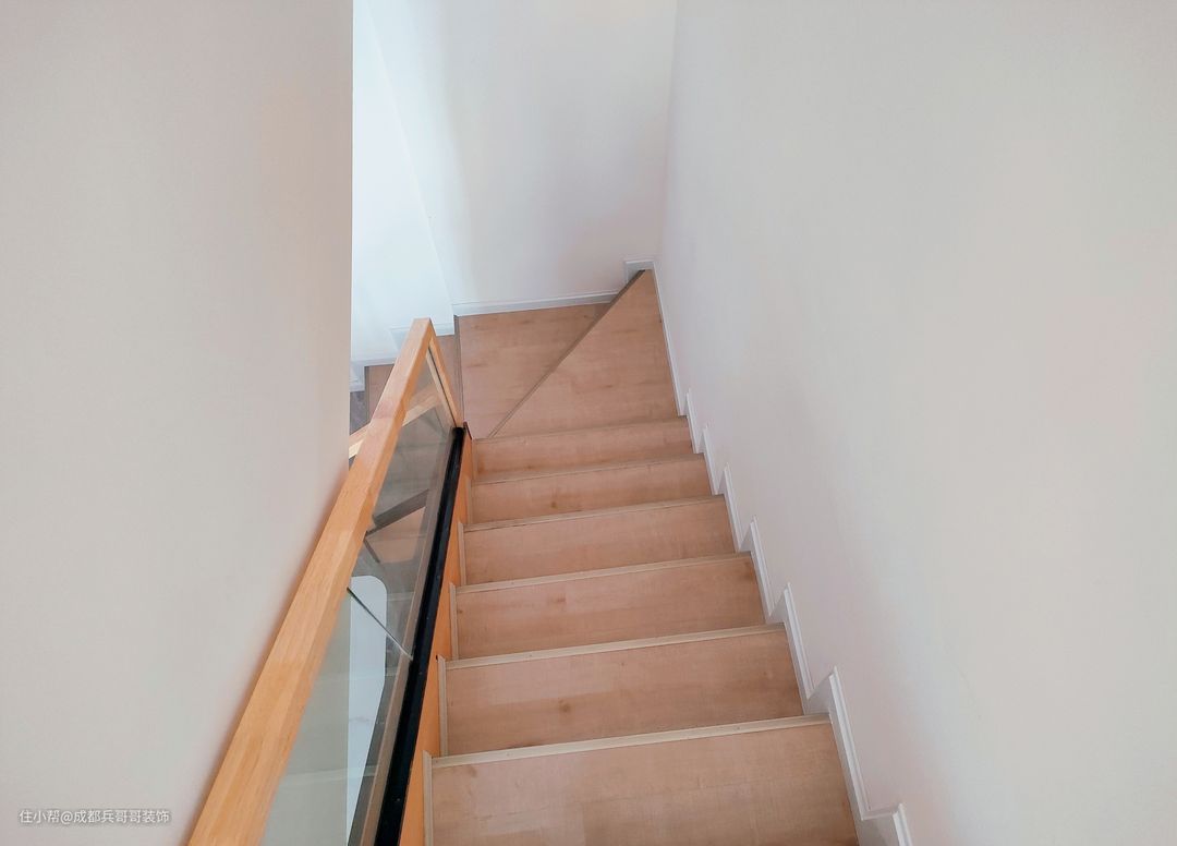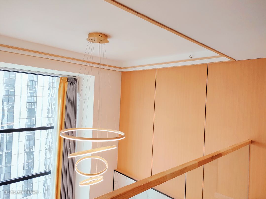 这套公寓采用的是原木扶手设计,搭配实木地板踏步,与整体风格相协调统一,氛围感更加自然和谐。