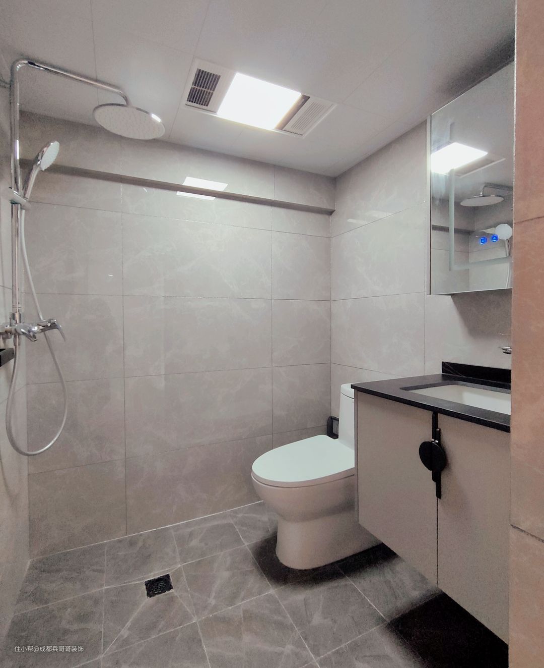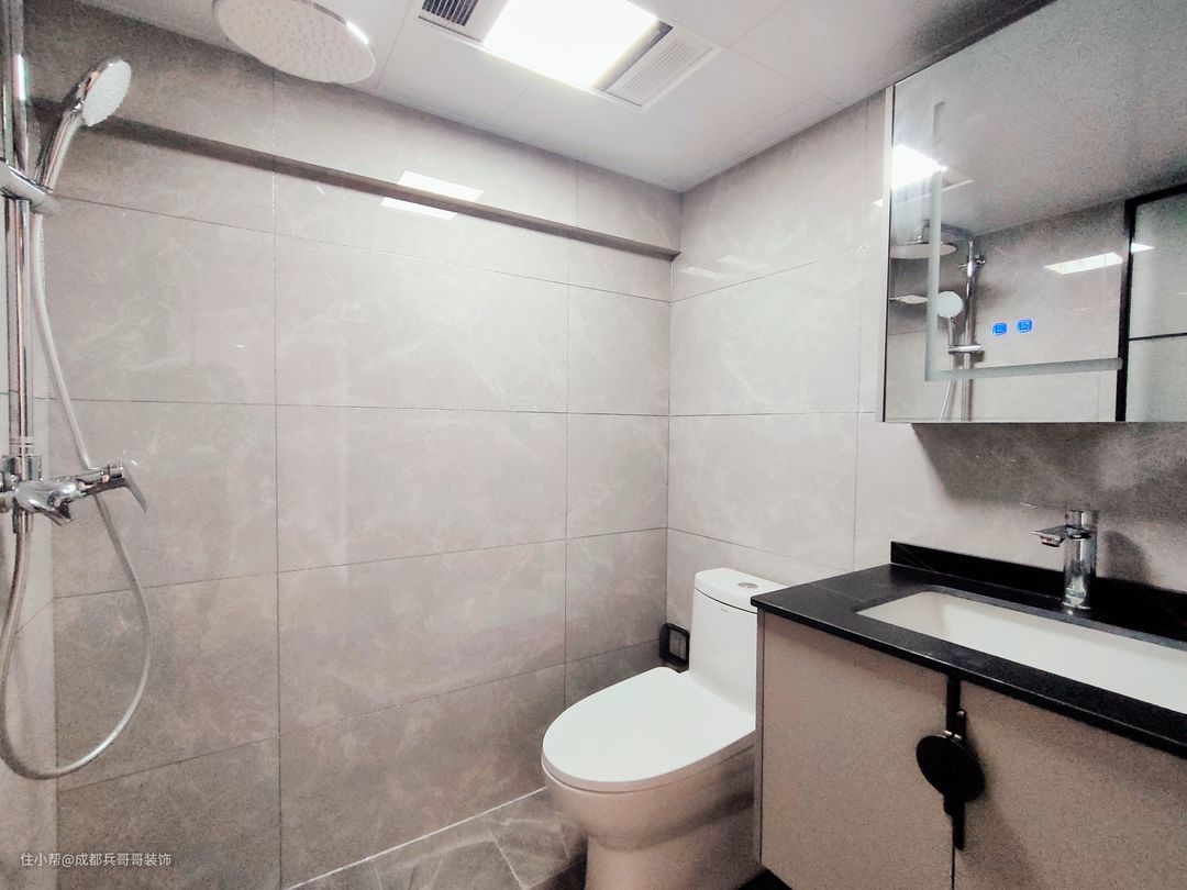 阁楼搭建后,一楼二楼均设立了卫生间,满足两层楼空间的使用,不用刻意上下楼。整体色彩是以灰色为主调布局,简洁干净,雅致温馨。