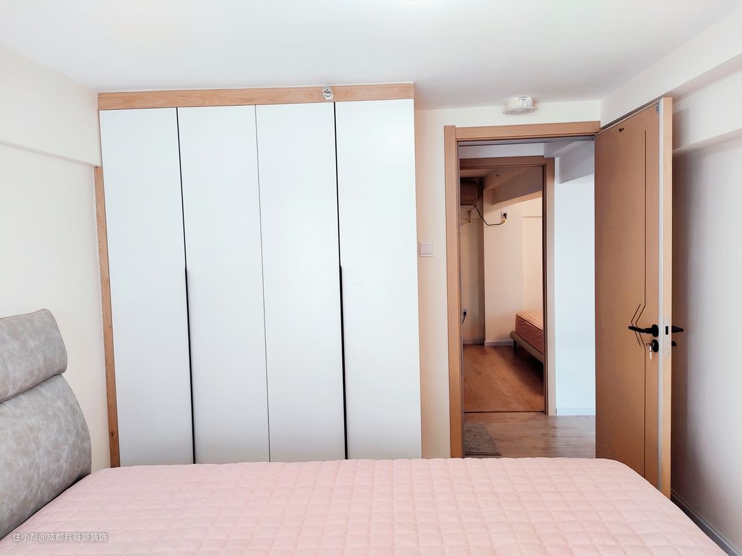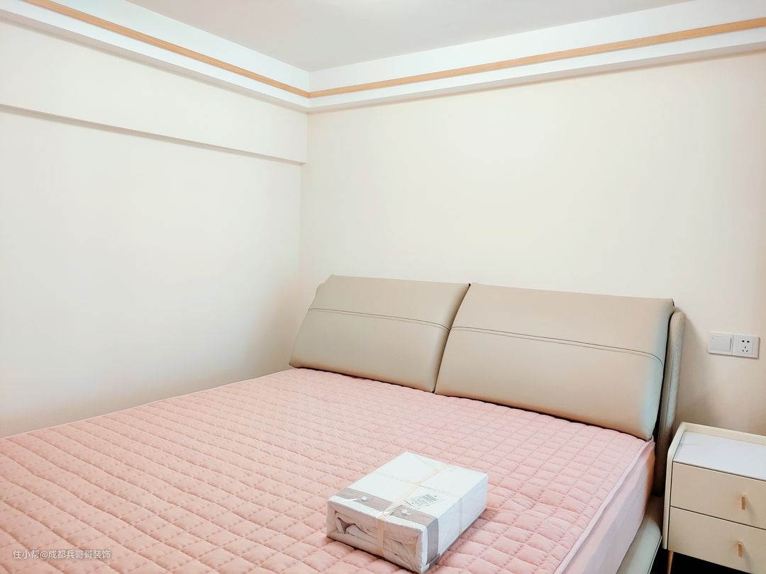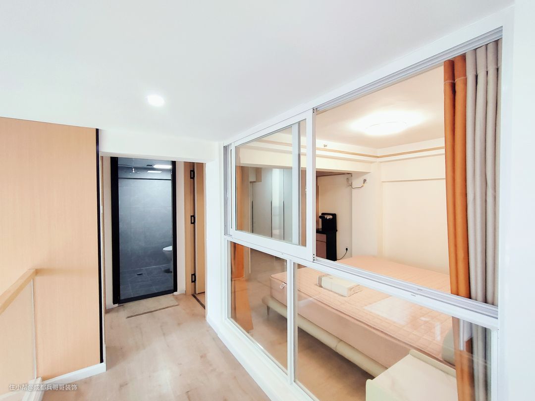 本案户型是3室2厅2卫1厨2阳台,其中3室包括1间主卧、1间长辈房、1间次卧,主卧和次卧在二楼,长辈房在一楼;两层楼分别配置了卫生间,很好地增加了生活的舒适度;一楼有洗衣晾晒的生活阳台,二楼主卧内侧设立了休闲观景阳台,房间的功能性十分全面。 屋主是90后年轻的小夫妻,一起努力,在成都拥有了属于彼此的爱巢。女主人很喜欢原木风格,家居崇尚简约自然,没有复杂的色彩与家具,还原空间最本质的美感。 🔶🔸设计亮点🔹🔷 1.阁楼搭建后,一楼客餐厅采用的是一体化设计,视觉上没有任何阻碍,空间感更好,一家人的互动性更多,家庭气氛更和谐; 2.一楼长辈房,放置了一张1米8的大床,搭配了对称性的床头柜和储物衣柜,满足日常收纳,非常方便; 3.一楼卫生间,采用了干湿分离的设计,安装了磨砂玻璃隔断和防臭型地漏,灰色墙砖和地砖,保证了良好的防潮防水效果; 4.一楼生活阳台,设计师贴心地在厨房和阳台的转角处,安装了极窄的门,有效地阻隔厨房炒菜时的油烟味,满满的细节感; 5.二楼主卧设计为品质套房,包括睡眠休息区、衣帽间、休闲阳台、饮水区,满足日常生活的个性化需求,尽显舒适与温馨。