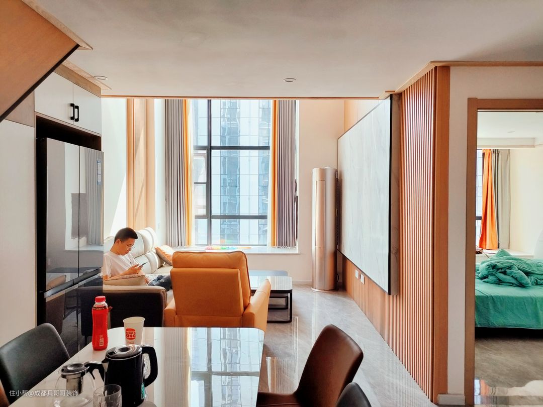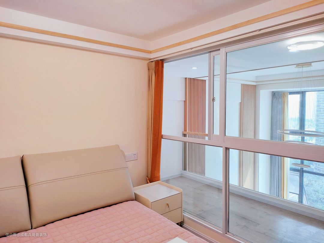 本案户型是3室2厅2卫1厨2阳台,其中3室包括1间主卧、1间长辈房、1间次卧,主卧和次卧在二楼,长辈房在一楼;两层楼分别配置了卫生间,很好地增加了生活的舒适度;一楼有洗衣晾晒的生活阳台,二楼主卧内侧设立了休闲观景阳台,房间的功能性十分全面。 屋主是90后年轻的小夫妻,一起努力,在成都拥有了属于彼此的爱巢。女主人很喜欢原木风格,家居崇尚简约自然,没有复杂的色彩与家具,还原空间最本质的美感。 🔶🔸设计亮点🔹🔷 1.阁楼搭建后,一楼客餐厅采用的是一体化设计,视觉上没有任何阻碍,空间感更好,一家人的互动性更多,家庭气氛更和谐; 2.一楼长辈房,放置了一张1米8的大床,搭配了对称性的床头柜和储物衣柜,满足日常收纳,非常方便; 3.一楼卫生间,采用了干湿分离的设计,安装了磨砂玻璃隔断和防臭型地漏,灰色墙砖和地砖,保证了良好的防潮防水效果; 4.一楼生活阳台,设计师贴心地在厨房和阳台的转角处,安装了极窄的门,有效地阻隔厨房炒菜时的油烟味,满满的细节感; 5.二楼主卧设计为品质套房,包括睡眠休息区、衣帽间、休闲阳台、饮水区,满足日常生活的个性化需求,尽显舒适与温馨。