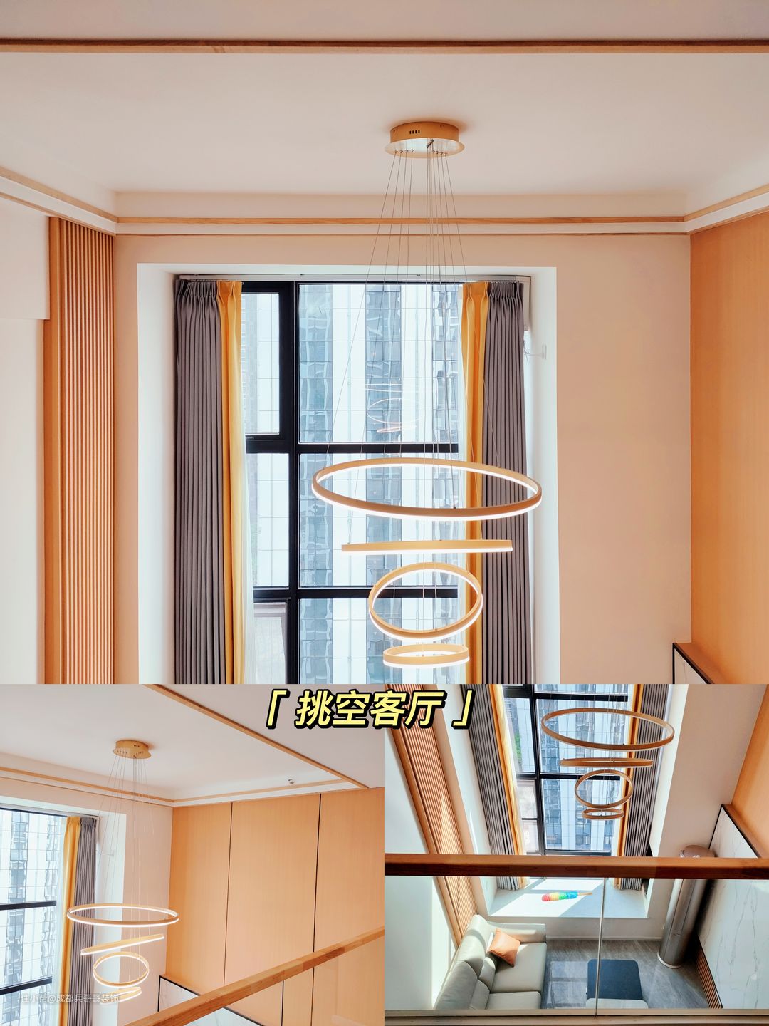 挑空客厅,层高有4.75米,连接着一楼与二楼的空间,设计上也十分讲究,不仅要有好的空间感,更要看起来大气、颜值在线。
