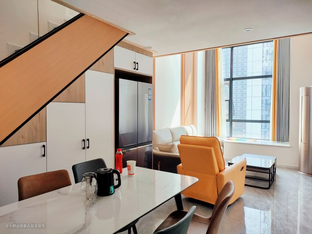 楼梯间,复式公寓刚开始的户型只是一个单调的空间,后期通过钢结构搭建筑就两层楼空间,那么就会搭建钢结构楼梯,起到过度空间的作用,这时候楼梯的设计尤其重要。无论是扶手还是踏步的设计,都关系着日后生活的舒适度。