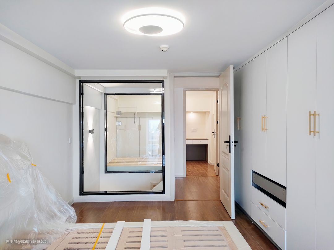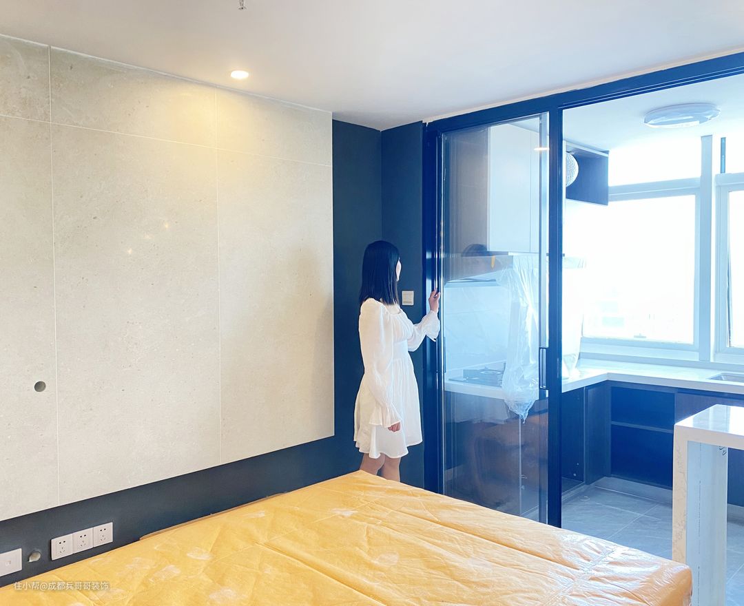 🔶🔶🔸🔸本案户型是2室2厅1卫1厨,其中2室是钢结构搭建后的主卧和次卧,由于户型面积不大,所以各个空间没有门的阻碍,尽可能还原房间的空间感,同时还能增加一家人的互动性,家庭氛围也更加和谐。