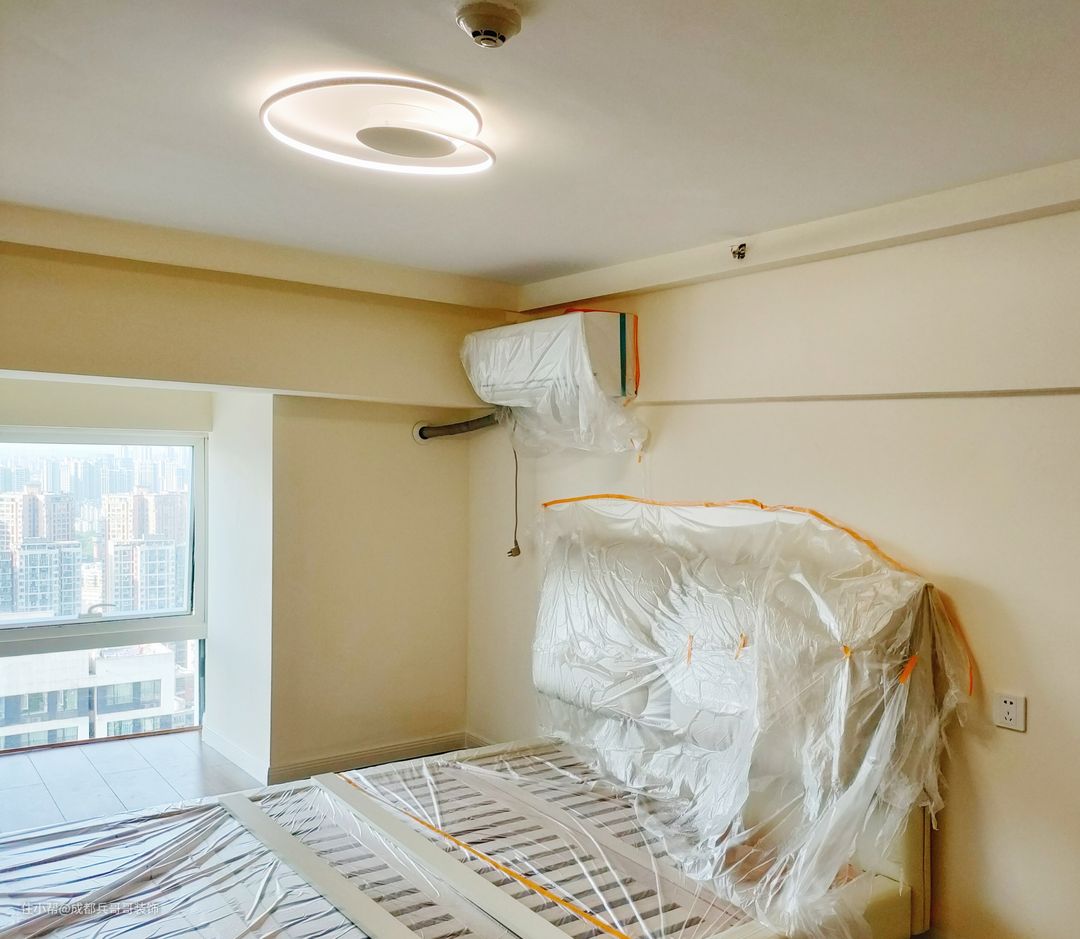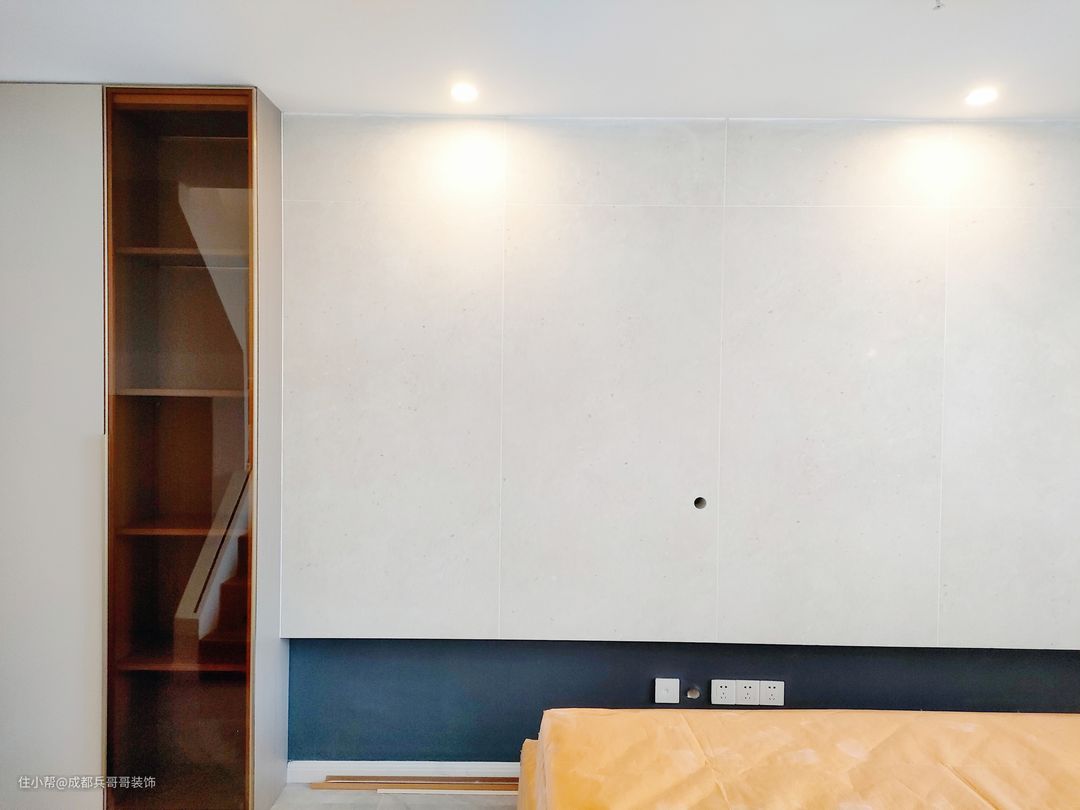 主卧,整体色调简洁干净,以简约白、原木色作为主色彩,金属色辅助期间,营造出优雅大气之感。