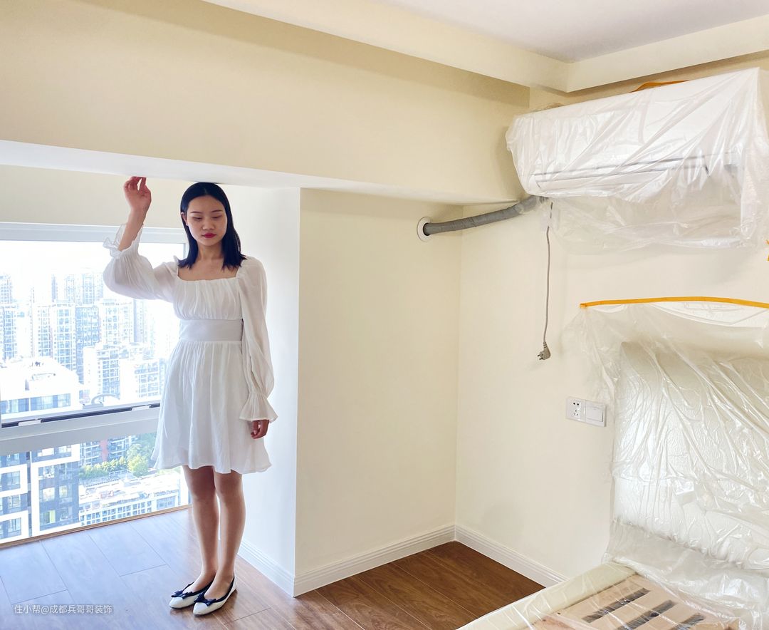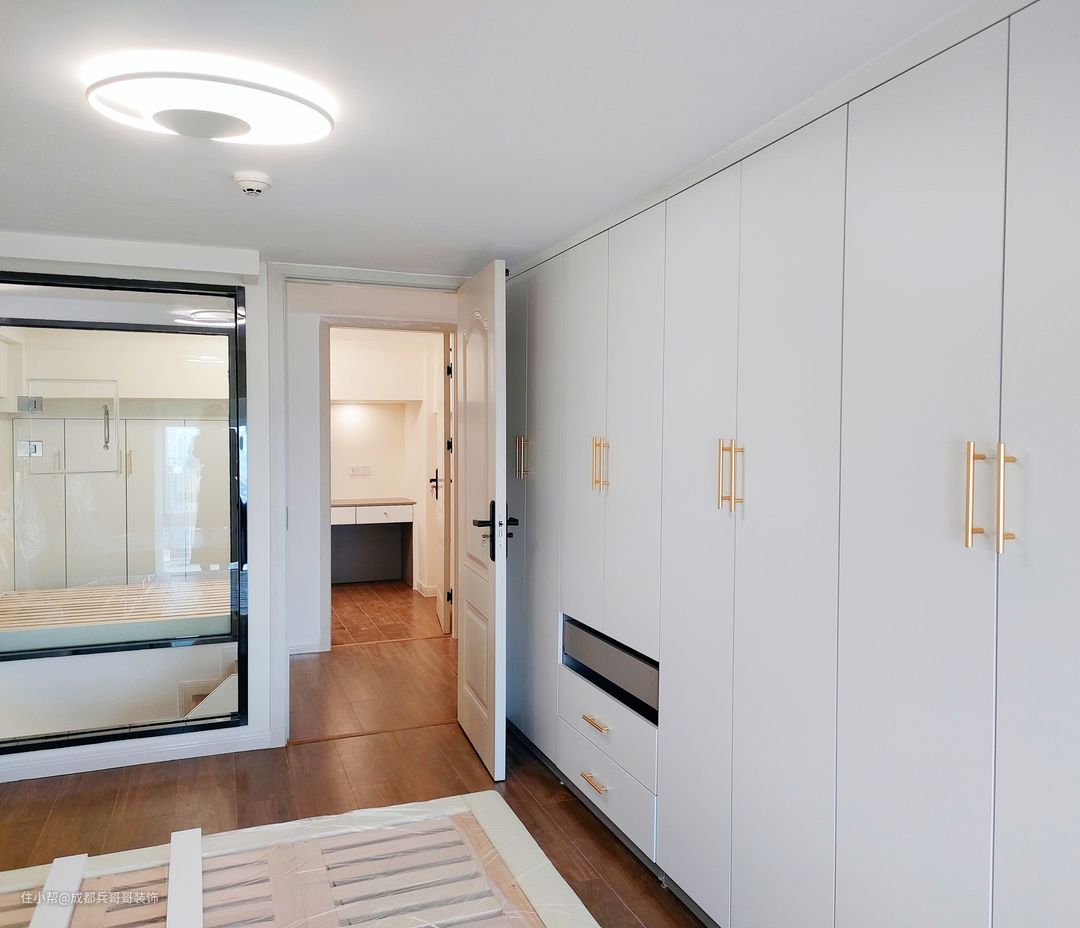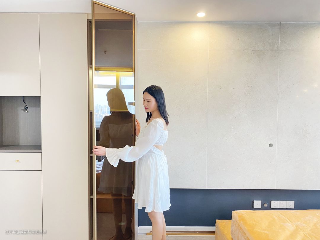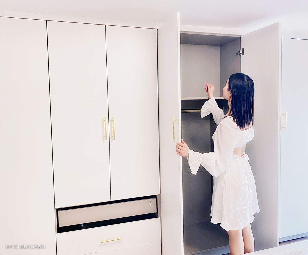 值得一提的是,房间内有大梁,很大程度上压缩了空间,但设计师巧妙将其利用了起来,在梁下设计了书桌和储物衣柜,犄角空间瞬间完美呈现在眼前,让人一眼便喜欢🥰