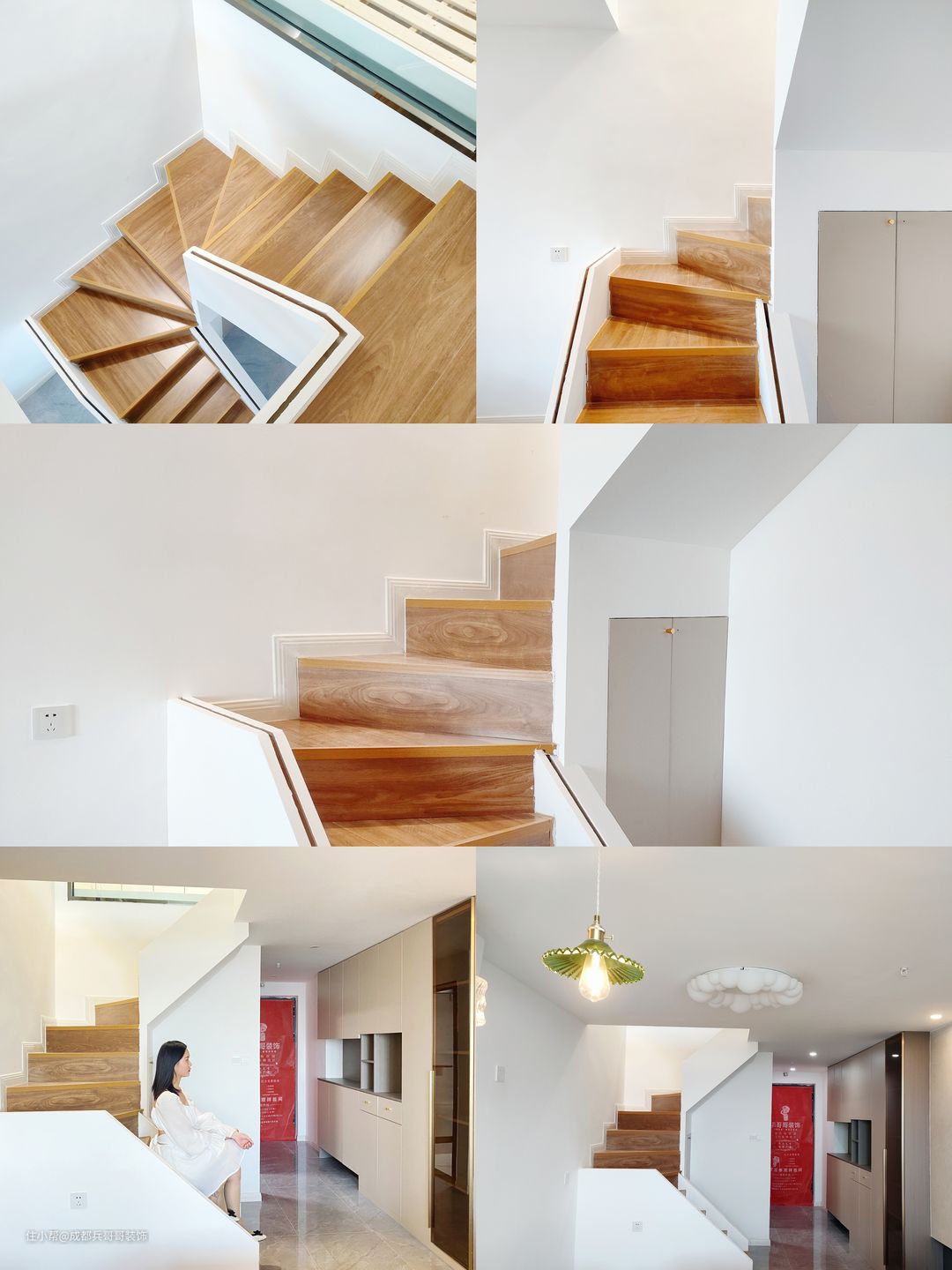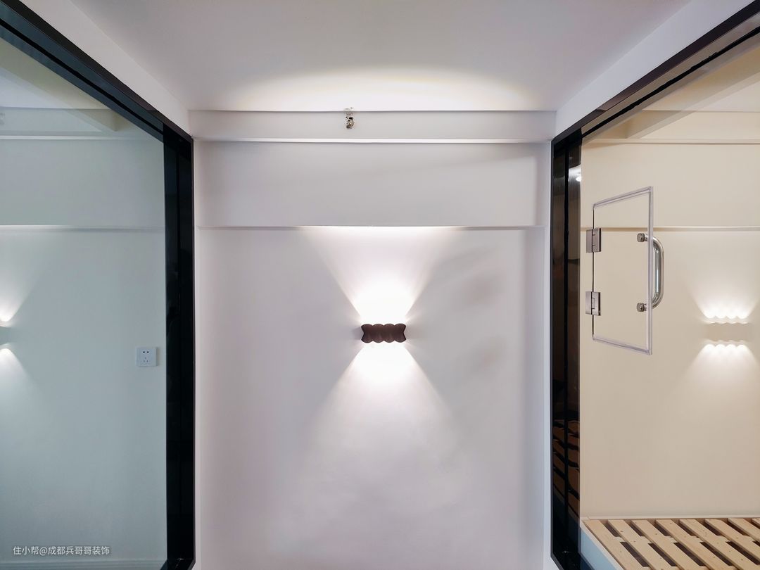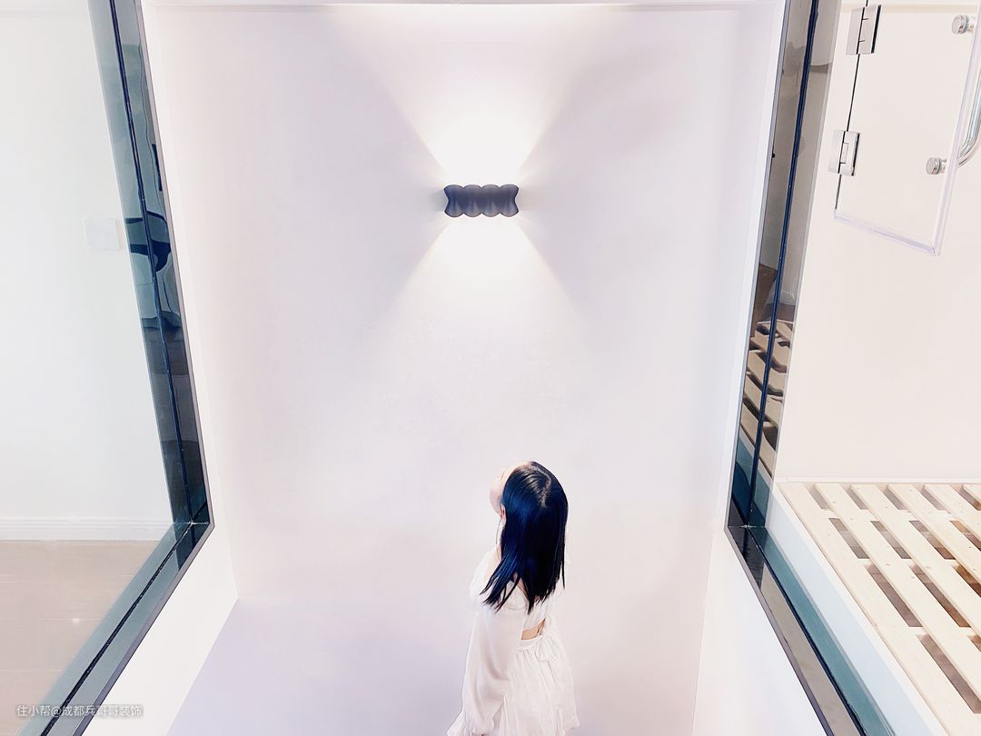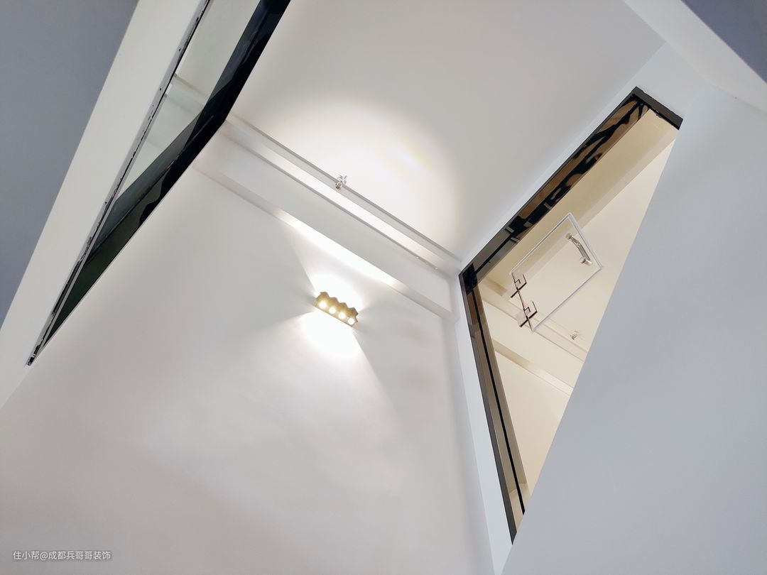 楼梯间,设计师还设计了创意氛围壁灯,简单雅致,空间感十足。