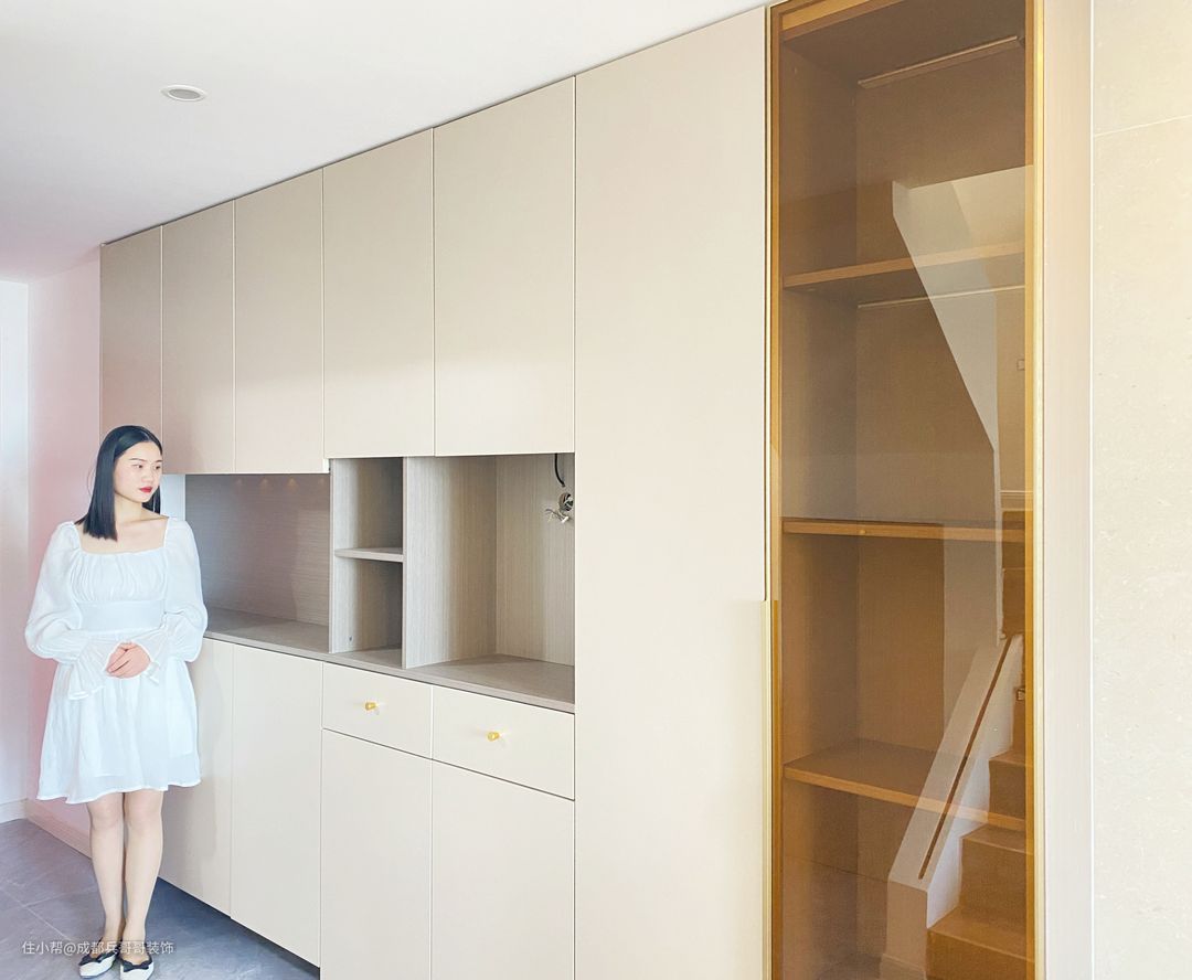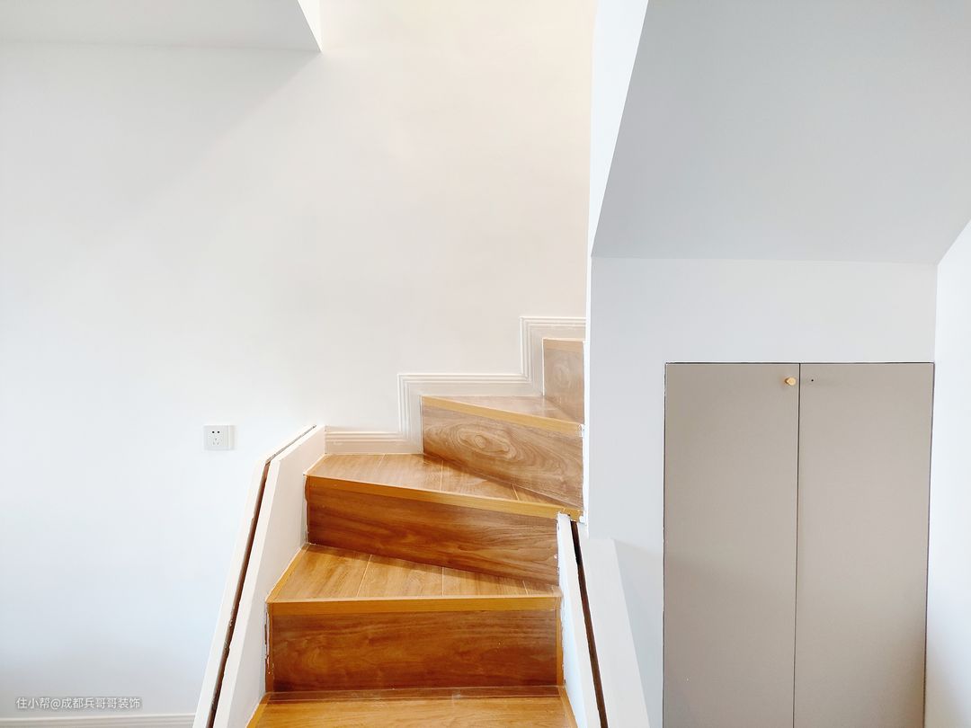 可以看到,楼梯下方改造成了储物间,让整个房间看上去更加整洁美观。