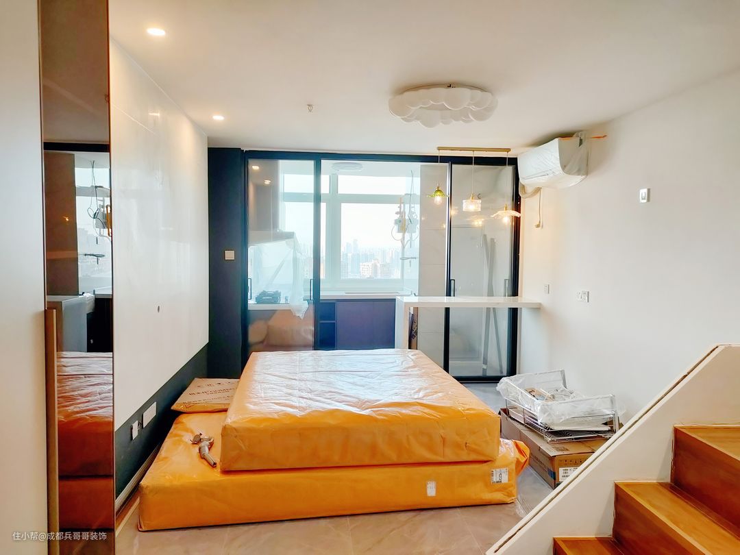 🔷🔷🔹🔹房子套内32平,建面68平,面积不大,需要满足两居室,钢结构要求全搭建,楼梯是作为两层楼的过度空间,整体风格选用的是现代简约风设计,色调优雅简洁,干净大方,让人久久不能忘怀,流连忘返……